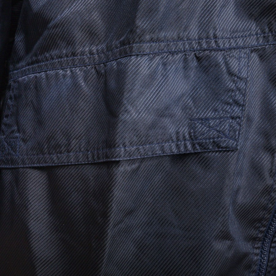 La giacca è un modello impermeabile, di colore blu scuro, caratterizzato dalla presenza della cerniera integrale, e dal con cappuccio a scomparsa nel collo. Capienti e comode tasche laterali con chiusura a strappo. Lo stemma della Lazio è ricamato lato cuore, mentre è applicato il logo dello sponsor tecnico Umbro presente sia sulla parte frontale che sul retro.