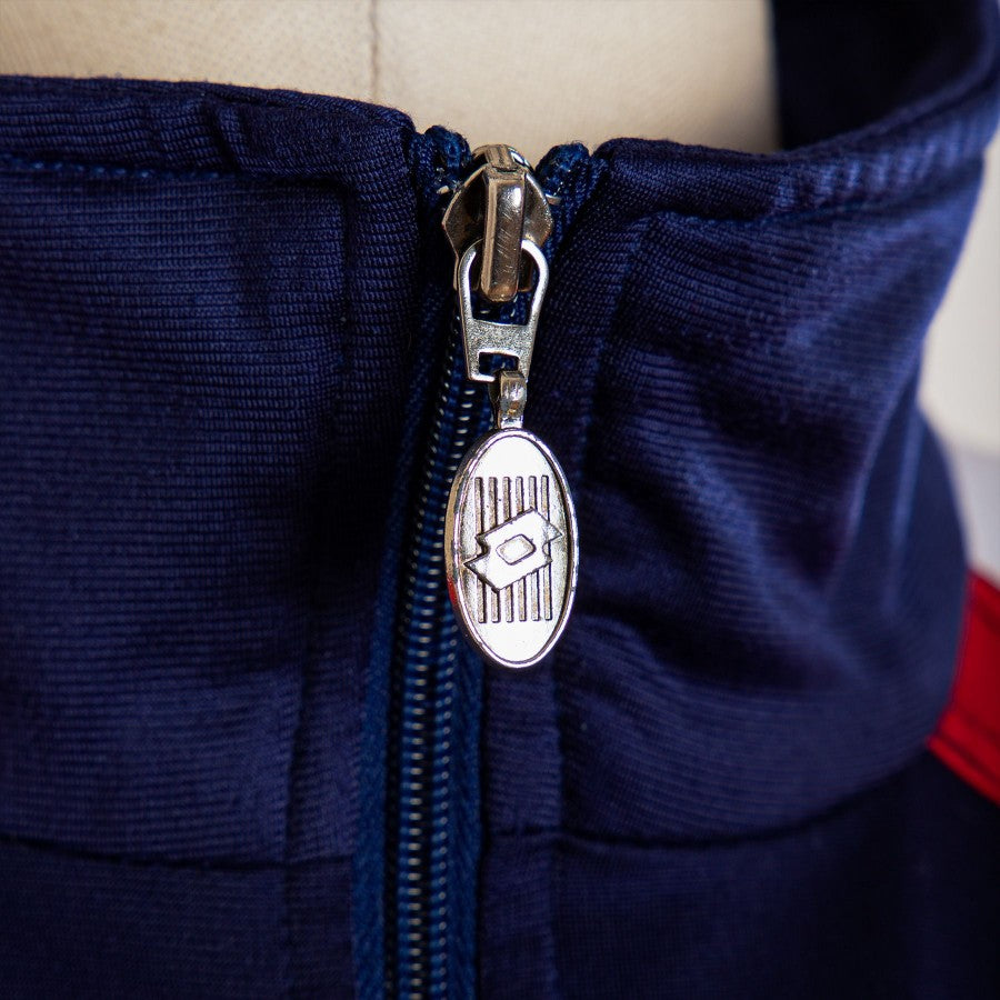 Giacca del Piacenza stagione 2000/2001. Sul fronte è ricamata sul lato destro la patch della Lotto, sul lato cuore è cucito il logo Piacenza e sul retro sono applicati i loghi degli sponsor commerciali Copra e DAC.