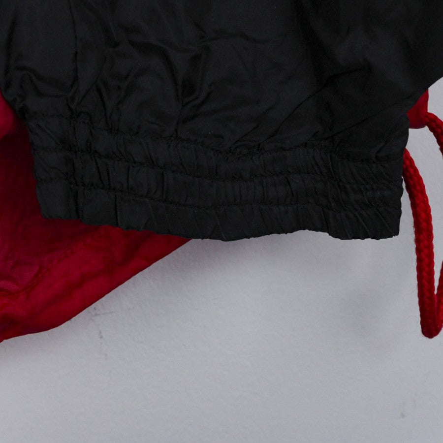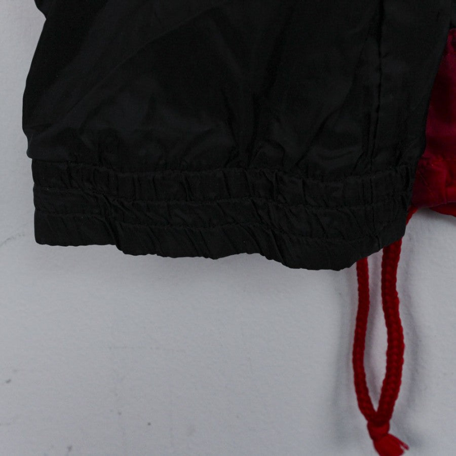 Giacca ufficiale del Milan per la stagione 1994/1995, realizzata dallo sponsor tecnico Lotto. Questa giacca presenta un design iconico con i colori rossoneri del club: rosso, nero e bianco. Sul petto sono visibili il logo Lotto e lo stemma del Milan, completo di stella dorata simbolo delle numerose vittorie in campionato. La parte posteriore è dominata dal logo Lotto in nero, mentre la giacca è dotata di cappuccio e chiusura a mezza zip. Questo capo è un classico della metà degli anni '90, periodo di grande successo per il club.