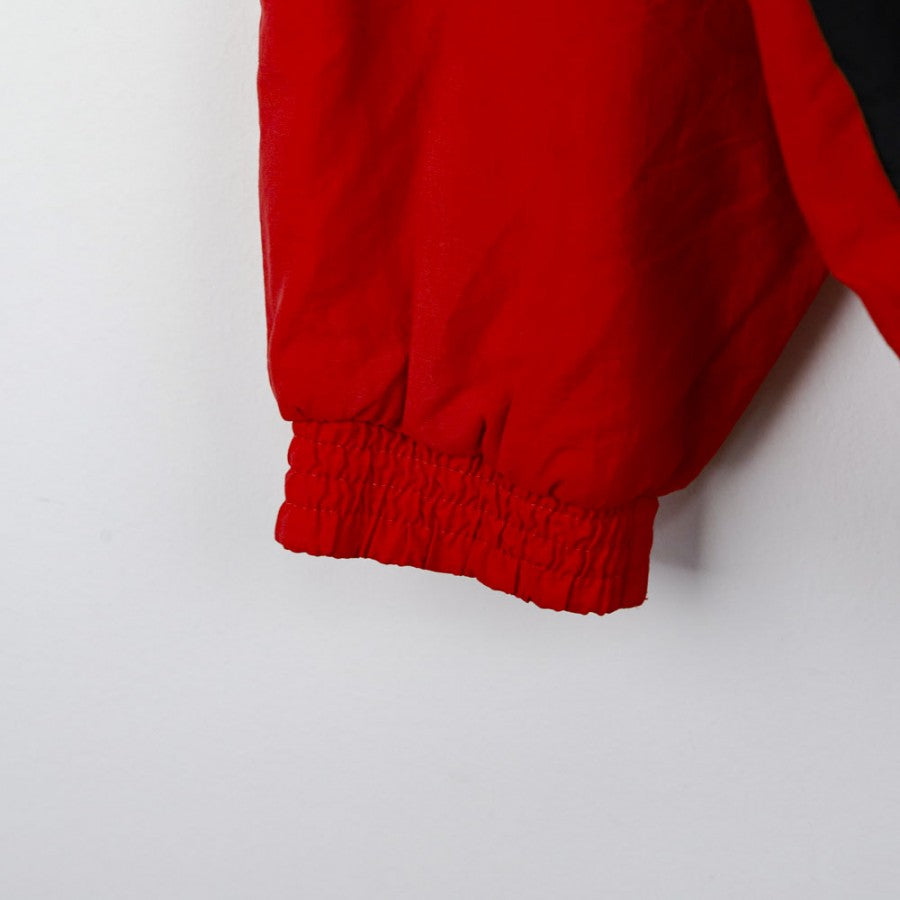 Giacca ufficiale del Milan, stagione 1997/1998, realizzata dallo sponsor tecnico Lotto. Questo modello presenta una predominanza del colore rosso con dettagli in nero e bianco, oltre al logo Opel, sponsor commerciale dell'epoca, ben visibile sul retro e sul petto. Sul davanti sono presenti lo stemma del Milan con la stella per i dieci scudetti, il logo Lotto e una patch con il simbolo ufficiale del club. La giacca è dotata di chiusura con zip e polsini elasticizzati per un comfort ottimale. Taglia L.
