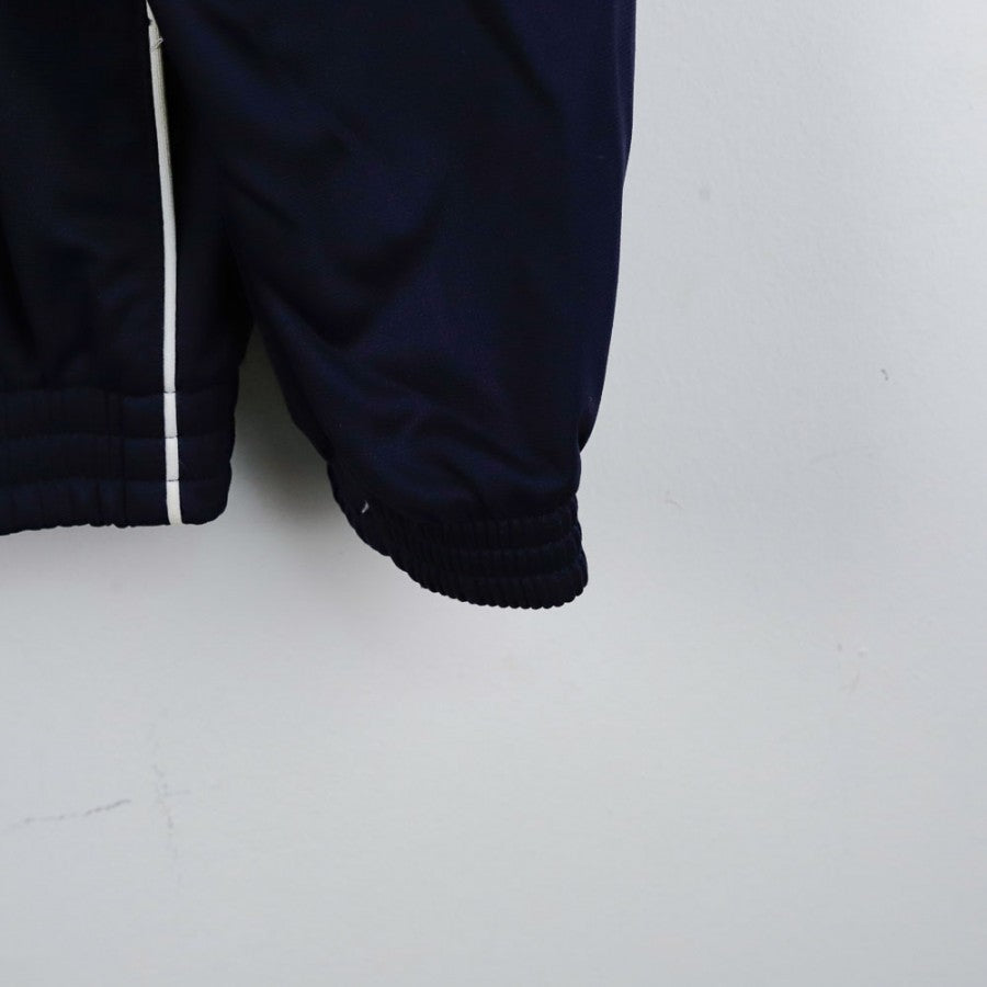 Giacca ufficiale della SSC Napoli per la stagione 2000/2001, realizzata dallo sponsor tecnico Diadora. La giacca, di colore blu scuro con dettagli azzurri e profili bianchi, presenta il logo Diadora ricamato sul petto e ripetuto lungo le maniche. Sul lato cuore è cucito il logo circolare della SSC Napoli. La parte posteriore mostra la scritta "SSC Napoli" sul colletto, a completare un design classico e distintivo. Chiusura a zip integrale e polsini elasticizzati. Taglia 50 (M).