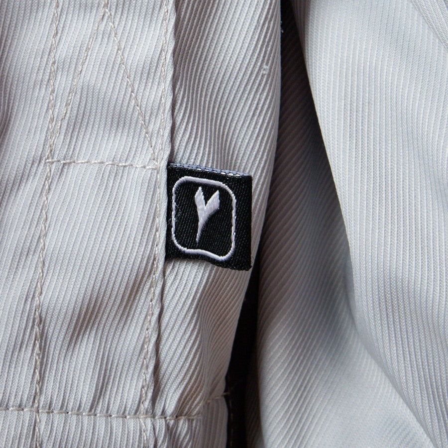 Giacca lunga prodotta da Diadora per il Napoli nella stagione 2001/2002. Colore grigio con dettagli celesti e tessuto in microfibra rivestito da rete interna. Comode tasche con zip e laccetto regolabile in vita. Logo Napoli e sponsor tecnico Diadora applicati in ricamo.
