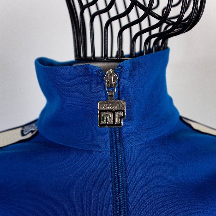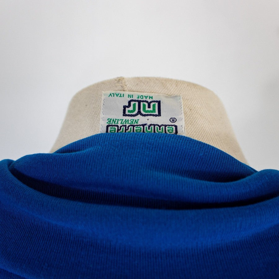 Giacca Ssc Napoli di colore azzurro realizzata dalla Ennerre per la stagione 1986/1987. Il capo di colore azzurro presenta la banda ennerre sulle spalle. Polsini di colore azzurro. Logo Ssc Napoli con scritta sul lato destro, NR cucito sulla sinistra con sponsor Buitoni verniciato in colore bianco.