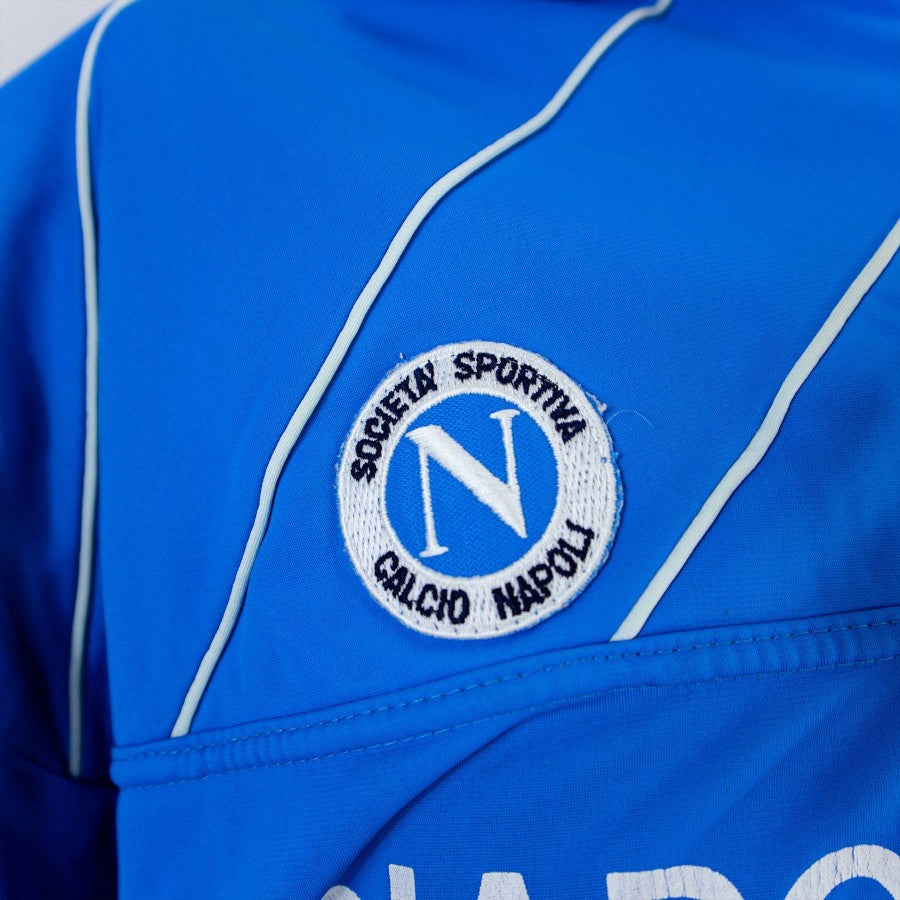 Giacca Ssc Napoli di colore azzurro realizzata dalla Ennerre per la stagione 1988-89. La giacca è di tessuto lucido. Polsini di colore azzurro. Logo Ssc Napoli cucito con scritta sul lato destro, NR cucito sulla sinistra con sponsor Mars verniciato in colore bianco. Il Mars si presenta in un carattere tondeggiante che lo distingue da quello utilizzato negli anni successivi.