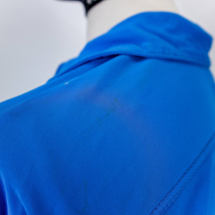 La giacca si presenta in buone condizioni, il tessuto presenta le caratteristiche originarie, morbido al tatto. I loghi sono in perfette condizioni. Etichetta della taglia 46 presente nel collo. Il braccio sinistra presenta una toppa applicata a quei tempi per coprire difettosità.