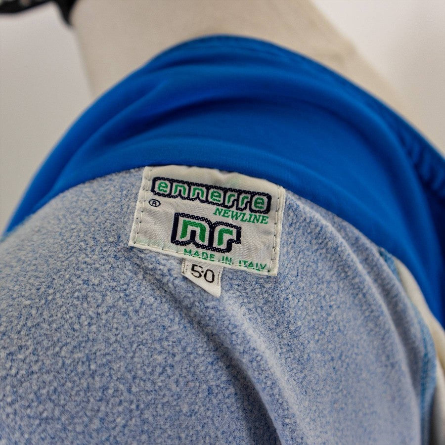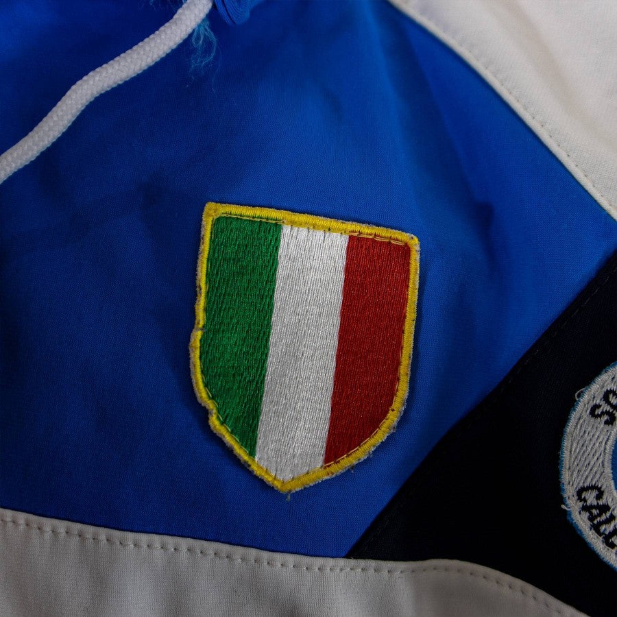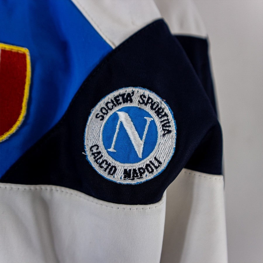 Giacca Ssc Napoli di colore azzurro realizzata dalla Ennerre per la stagione 1988-89. La giacca è di tessuto lucido. Polsini di colore azzurro. Logo Ssc Napoli cucito con scritta sul lato destro, NR cucito sulla sinistra con sponsor Mars verniciato in colore bianco. Il Mars si presenta in un carattere tondeggiante che lo distingue da quello utilizzato negli anni successivi.