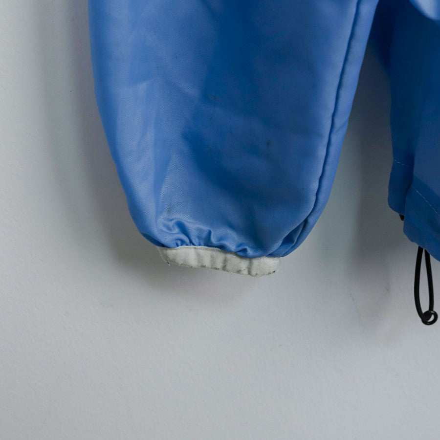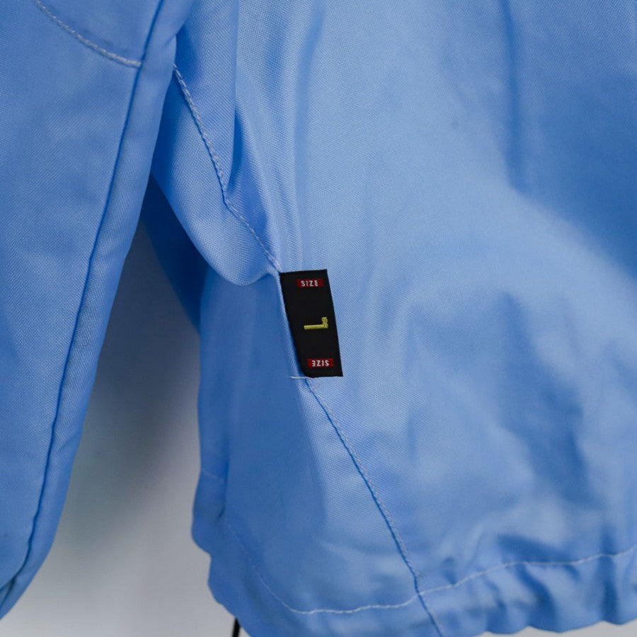 Giacca ufficiale del Napoli, stagione 2005/2006, prodotta dallo sponsor tecnico Kappa. Realizzata in colore azzurro chiaro, questa giacca presenta il logo Kappa ricamato sul petto destro e su entrambe le maniche, mentre sul lato cuore si trova lo stemma ufficiale del club. Dotata di chiusura a zip integrale, colletto alto e orlo regolabile con cordoncini, è pensata per garantire comfort e praticità in ogni condizione atmosferica. La taglia è L, ideale per tifosi e collezionisti che desiderano un capo autentico legato alla rinascita del club partenopeo.