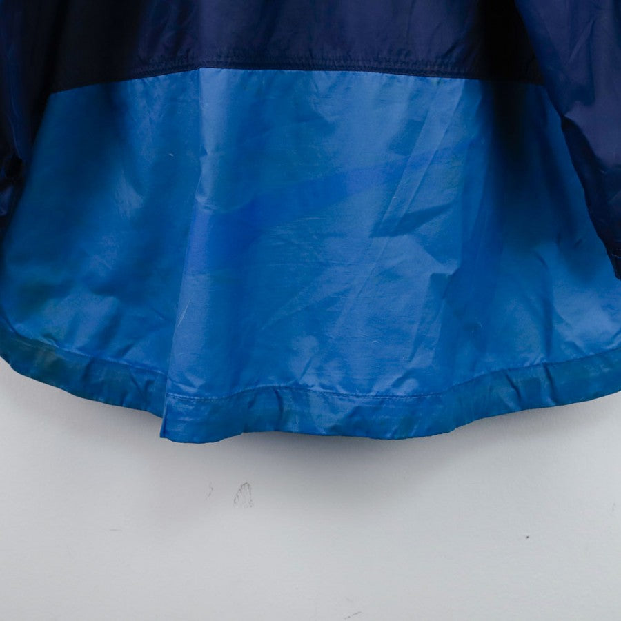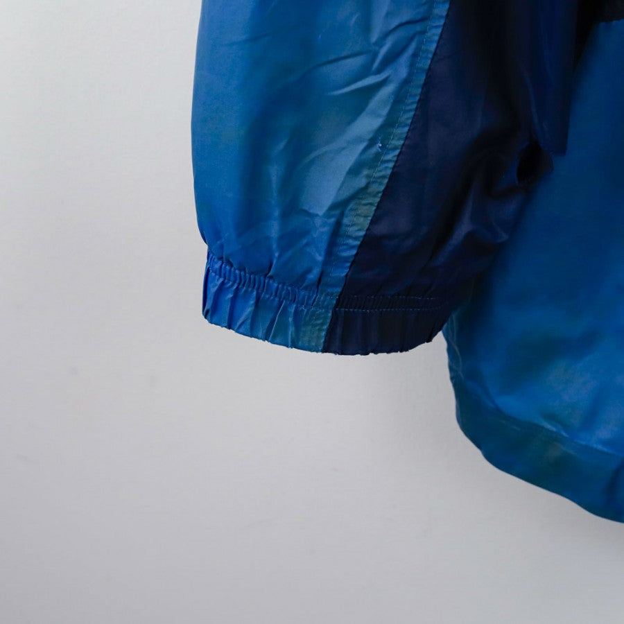 Giacca ufficiale della SSC Napoli per la stagione 1998/1999, prodotta dallo sponsor tecnico Nike. La giacca è in tessuto impermeabile blu con maniche azzurre e logo Nike ricamato sul petto, accanto allo stemma del Napoli. Sul retro, la scritta "Nike" bianca domina le spalle. Un capo iconico degli anni '90, perfetto per i collezionisti e gli appassionati del Napoli. Taglia L.