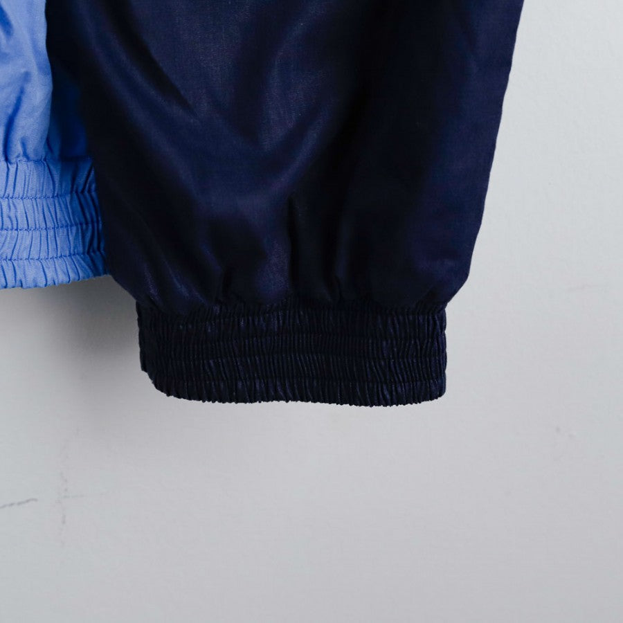 Giacca ufficiale del Napoli, stagione 1991/1992, realizzata dallo sponsor tecnico Umbro. Questo capo presenta un design geometrico con tonalità azzurre, blu navy e bianche, simbolo dello stile degli anni '90. Sul lato cuore è ricamato lo stemma del club, mentre il logo Umbro è posizionato sul petto destro. La giacca, dotata di una chiusura a zip integrale e colletto alto, garantisce comfort e stile. Il rivestimento interno a righe bianche e blu completa l'estetica distintiva del capo. Taglia XL, ideale per collezionisti e appassionati del Napoli.