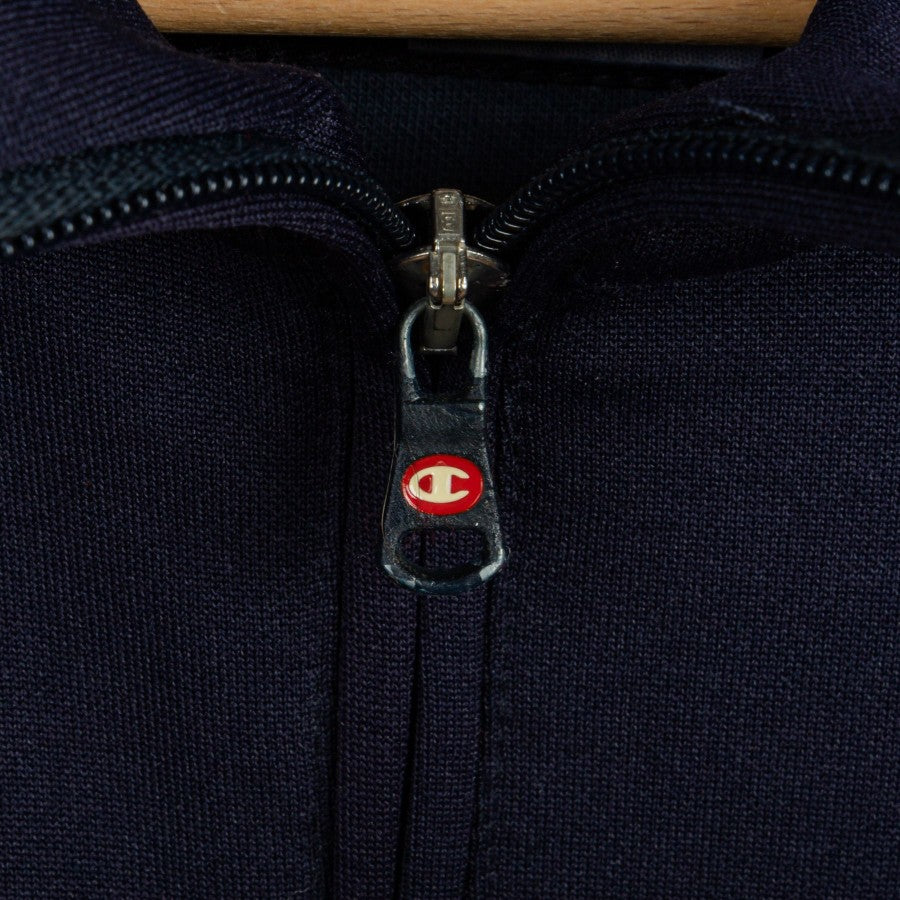 Modello full zip di colore blu con inserti in giallo. Stemma sulla sinistra insieme a Parmalat, sulla destra troviamo Champion e Joy. Sulle spalle le bande dello sponsor Champion,