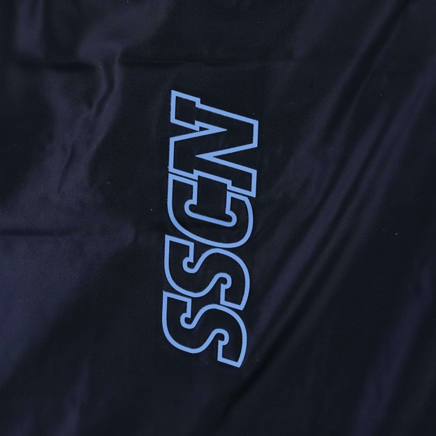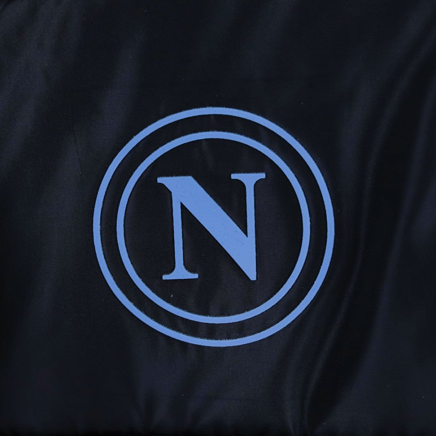 Giacca piumino ufficiale del Napoli realizzata dallo sponsor tecnico EA7 per la stagione 2023/2024. Il design presenta una base blu scuro con imbottitura trapuntata, zip frontale e tasche laterali con chiusura a zip. Sul petto sono applicati il logo EA7 e il logo Napoli in azzurro, mentre sul retro spicca la scritta "SSCN" ricamata nella parte alta. Il modello è progettato per garantire comfort e protezione dal freddo, perfetto per l'inverno e per accompagnare la squadra nelle trasferte.