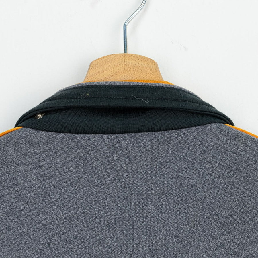 Giacca ufficiale della AS Roma per la stagione 1999/2000, realizzata dallo sponsor tecnico Diadora. Il design presenta una base grigia con dettagli in nero e rifiniture giallorosse sulle maniche e lungo i bordi. Sul petto è ricamato lo stemma della squadra e il logo Diadora, mentre le maniche sono decorate con il lupetto storico e il simbolo del fornitore tecnico. Dotata di zip centrale e coulisse regolabile, questa giacca unisce comfort e stile, rendendola un pezzo ricercato dai collezionisti. Taglia 50.