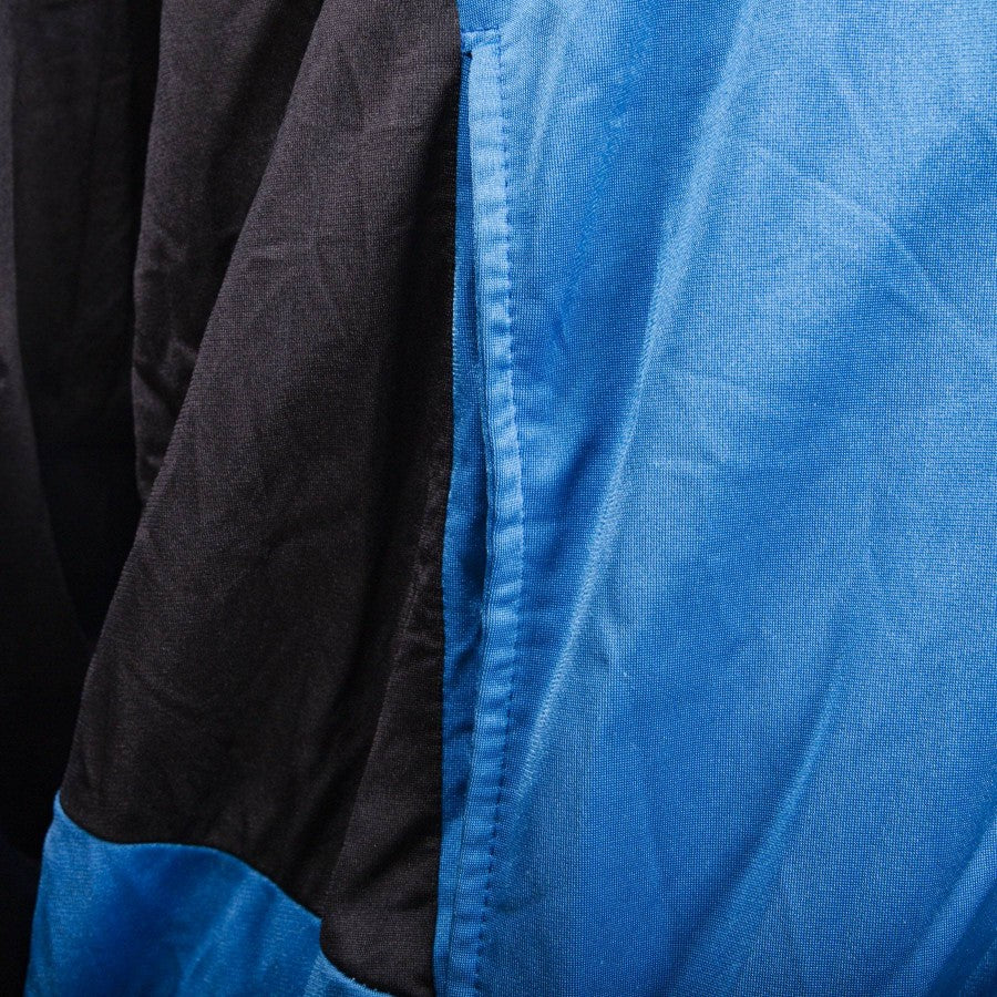 Giacca track degli anni 90 con inserti di colore a contrasto realizzati in tessuto acetado ed in sublimatico. Lo stemma del club è cucito, logo della ASICS cucito e sponsor commerciale ERG serigrafato sulla parte anteriore. ERG è ripetuto sul retro e realizzato in sublimatico sul tessuto. Banda Asics sulle maniche