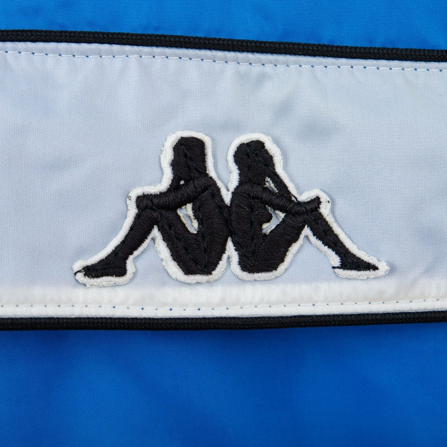 Il prodotto è ben visibile dalle diverse foto a esso relative. La giacca è a maniche lunghe, in colore prevalentemente blu, con presenza bel bianco e di inserti neri, e del colore grigio sui polsini, sul colletto e sul fondo della giacca stessa; da notare la presenza di un cappuccio bianco dietro la schiena regolabile con dei lacci nella zona del colletto; sulle maniche è impresso a ripetizione il logo blu di Kappa su bande verticali bianche; sul fronte dell'articolo vediamo una banda bianca orizzontale sull'addome e due bande bianche oblique verso i fianchi; al centro è applicato il logo del club, mentre poco più in basso, leggermente defilato, c'è il logo nero di Kappa sulla banda dell'addome.