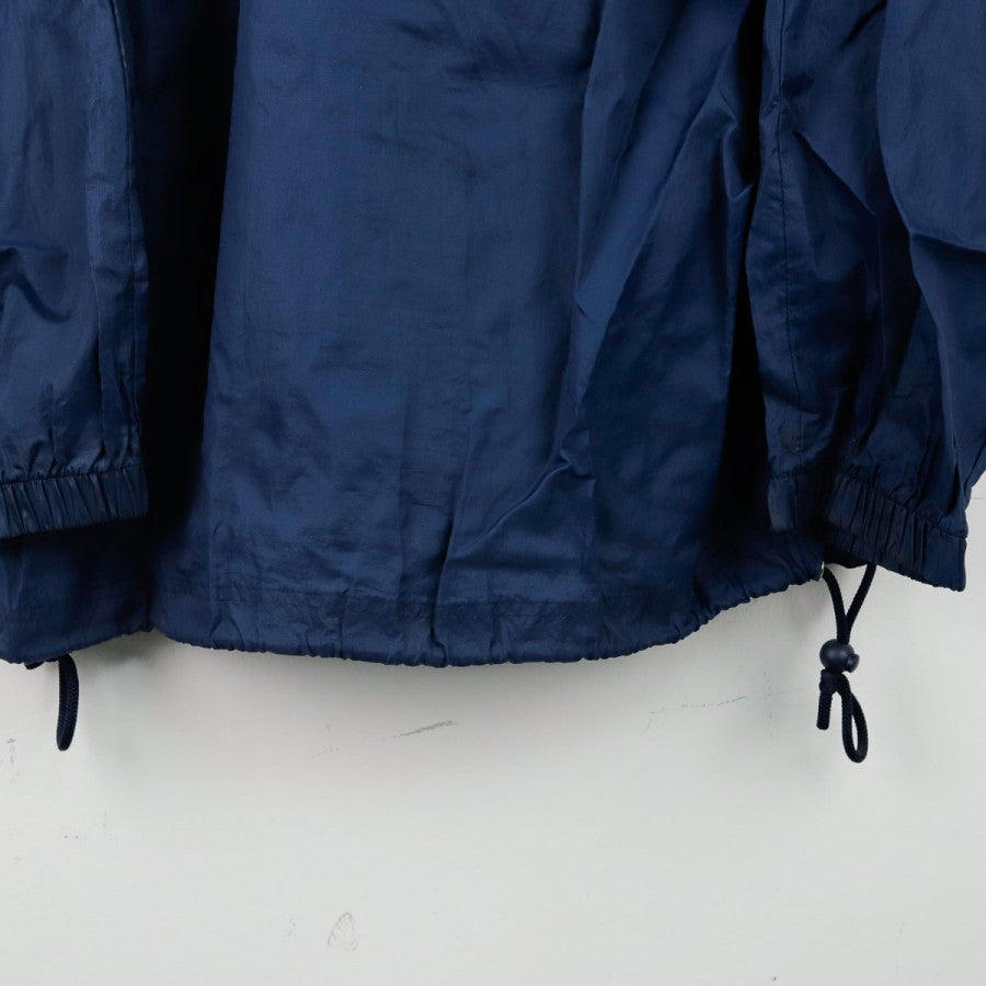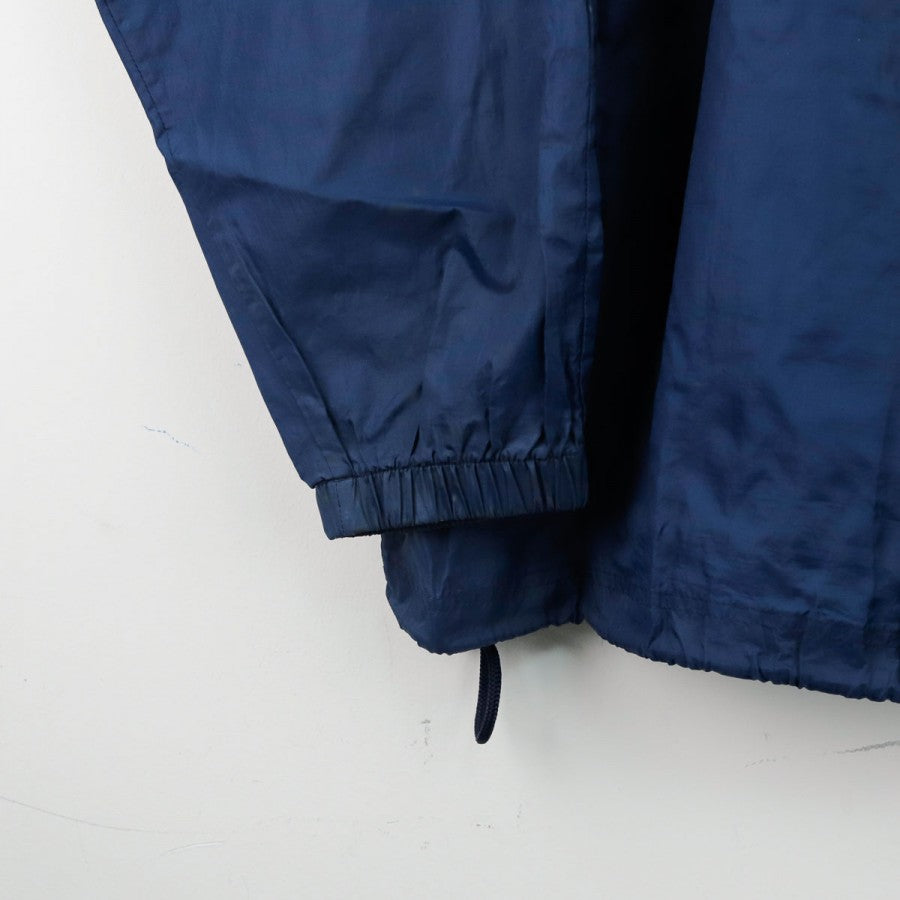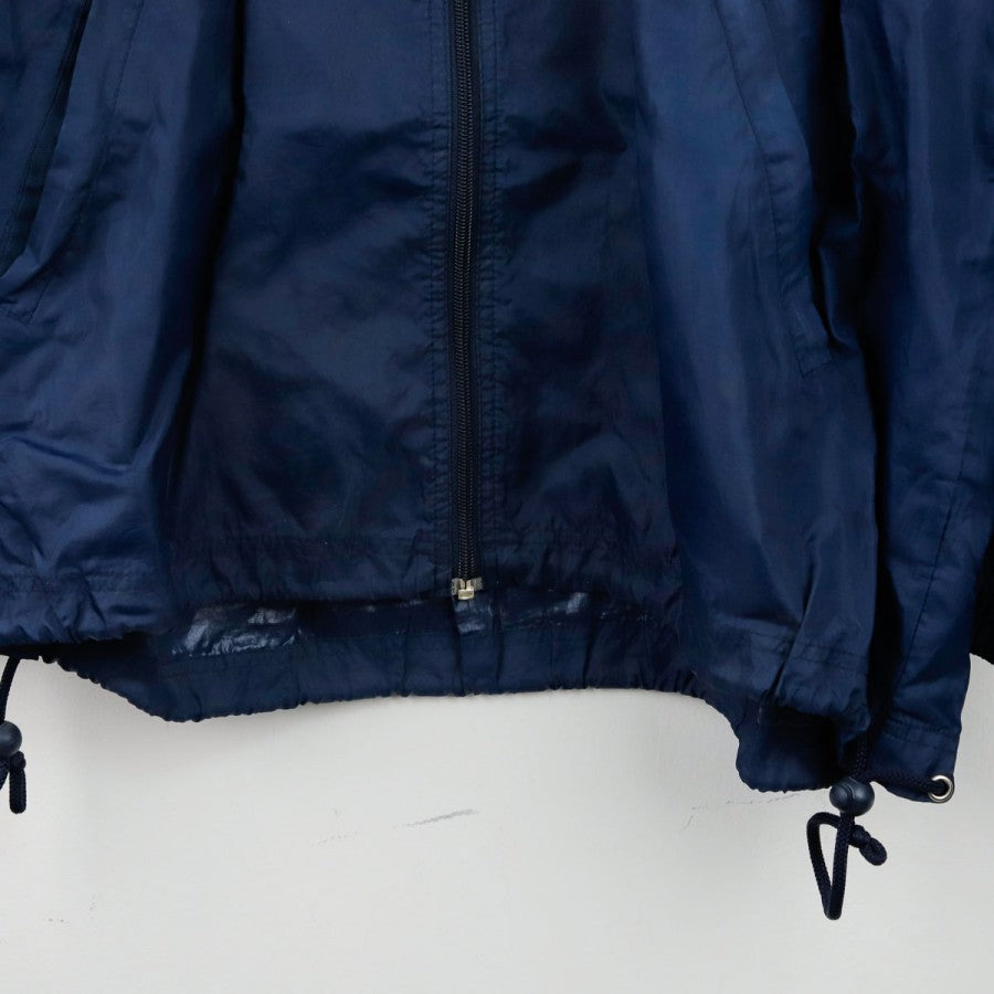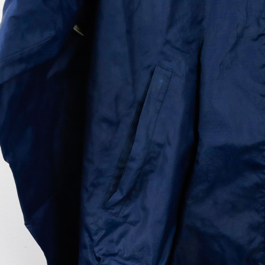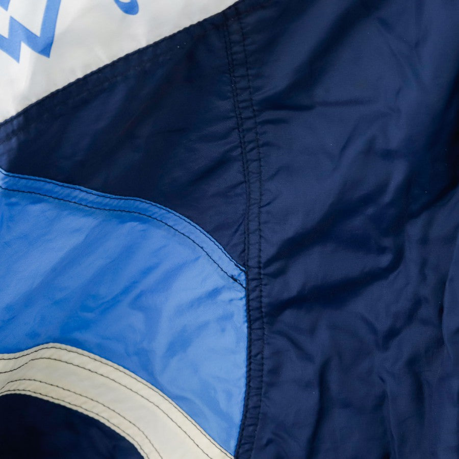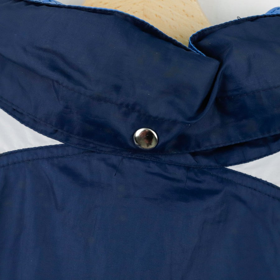 Giacca SSC Napoli Lotto Centrale del Latte 1996/1997, realizzata da Lotto per la stagione 1996/1997. Il design classico anni '90 è caratterizzato da una base blu con inserti azzurri e bianchi. Sul petto sono presenti il logo Lotto e lo stemma del club, mentre sul retro spicca lo storico sponsor "Centrale Latte di Napoli" ricamato. Il capo è dotato di zip integrale, cappuccio nascosto nel colletto e coulisse regolabile. Un capo vintage rappresentativo di un'epoca iconica del calcio italiano.