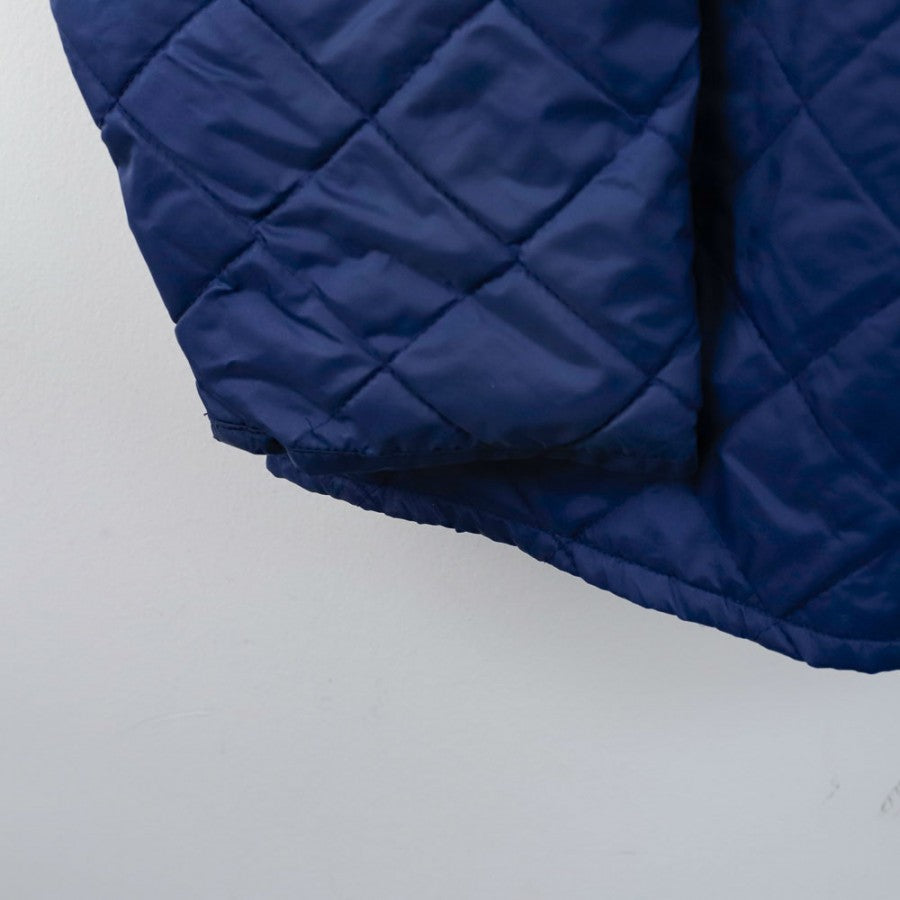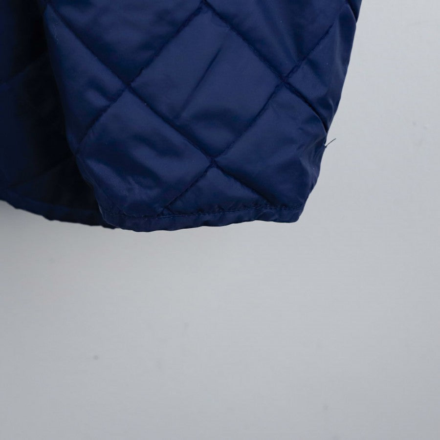 Giacca trapuntata ufficiale della Lazio, stagione 1993/1994, prodotta dallo sponsor tecnico Umbro. Questa giacca è realizzata in colore blu navy con interno imbottito per garantire calore durante i mesi più freddi. Presenta il logo Umbro e lo stemma della Lazio ricamati sul petto, mentre il logo Umbro è stampato in grande sul retro. È dotata di chiusura a bottoni e tasche laterali, con dettagli in velluto sul colletto che aggiungono un tocco di eleganza. Disponibile in taglia L, è un capo iconico per i collezionisti e i tifosi biancocelesti.