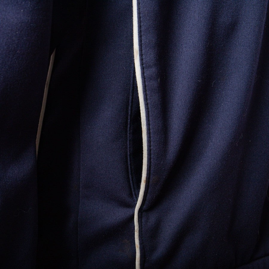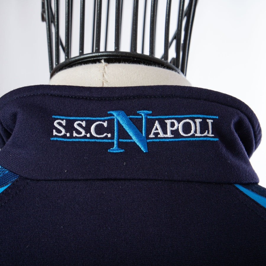 Giacca della tuta del Calcio Napoli di colore blu scuro della stagione 2000/2001. Sponsor tecnico Diadora ricamato in bianco e Logo del Calcio Napoli cucito. Sponsor commerciale è Peroni cucito sul lato destro. Banda Diadora di colore azzurre sulle maniche.
