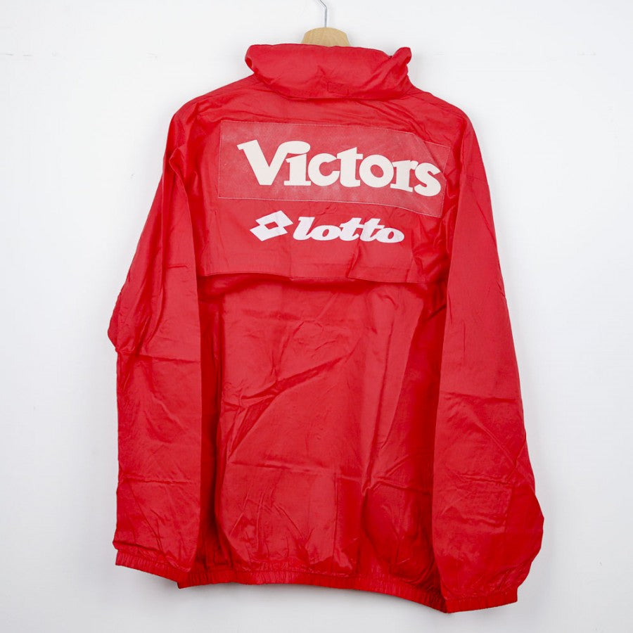 Giacca della squadra Udinese realizzata dallo sponsor tecnico Lotto per la stagione 1992/1993. Di colore rosso presenta lo stemma della squadra ricamato sul petto, lo sponsor tecnico Lotto applicato e lo sponsor commerciale Victors. Taglia L.