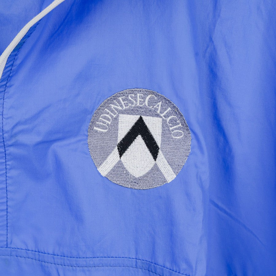 Giacca della squadra Udinese realizzata dallo sponsor tecnico Lotto per la stagione 1992/1993. Di colore azzurro presenta lo stemma della squadra cucito sul petto, il logo dello sponsor tecnico Lotto applicato come è applicato lo sponsor commerciale Gaudianello che troviamo sia avanti al centro della maglia sia dietro. Taglia L.