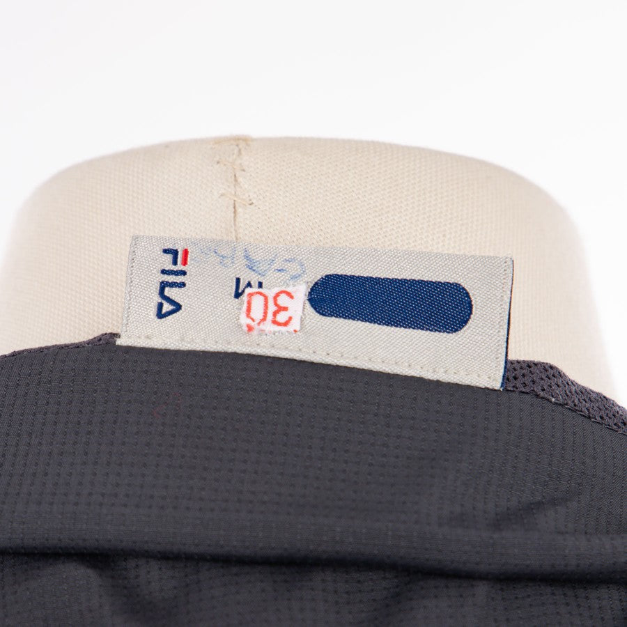 Stemma della società sportiva cucito sul lato destro e marchio dello sponsor tecnico Fila applicato sul lato sinistro del modello.
