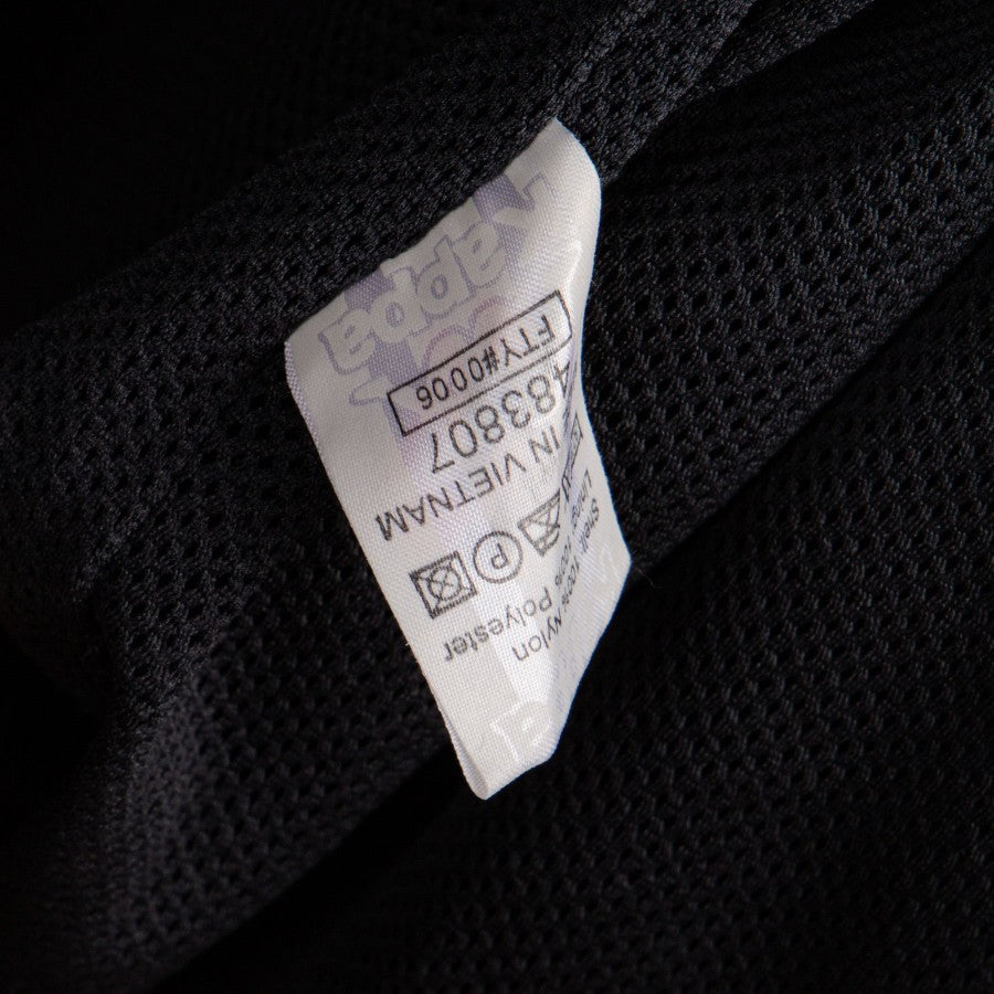 Modello di colore nero, zip con cerniera personalizzata e tasche laterali con zip. Bande Kappa sulle braccie. Lato cuore troviamo il logo Ancona Calcio, sulla destra logo Kappa ricamato.