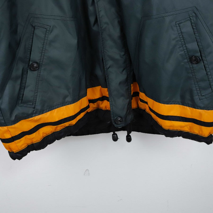 Il giaccone ufficiale della AS Roma, stagione 1998/1999, realizzato dallo sponsor tecnico Diadora. Questo giaccone invernale è caratterizzato dai colori tradizionali giallorossi, con dettagli arancioni su sfondo grigio scuro. Sul petto sono visibili lo stemma della Roma, con il celebre lupetto, e il logo Diadora a destra. Lo sponsor commerciale As Roma è posizionato al centro. Le maniche presentano un design moderno con fasce arancioni e inserti a rete neri.
