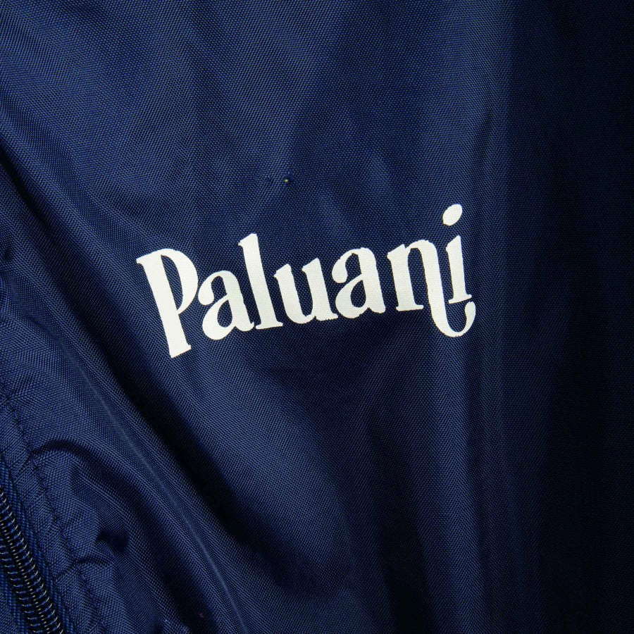 Modello di colore blu con inserti gialli e navy. Tasche laterali con zip, cerniera full zip. Lato cuore troviamo lo sponsor commerciale Paluani, sulla destra logo Lotto ricamato.