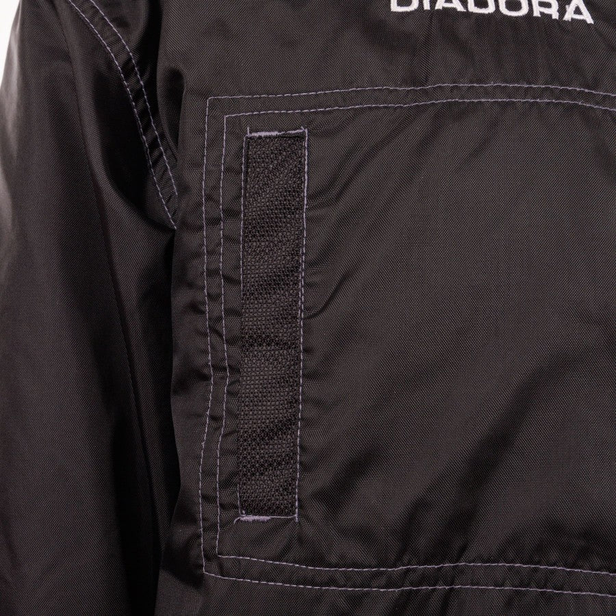 Giaccone con cappuccio della Roma, realizzato dallo sponsor tecnico Diadora, in ottime condizioni, con tessuto che si presenta esattamente come allo stato originario, senza difetti o macchie. I colori non sono sbiaditi e le cuciture sono intatte. Taglia XXL