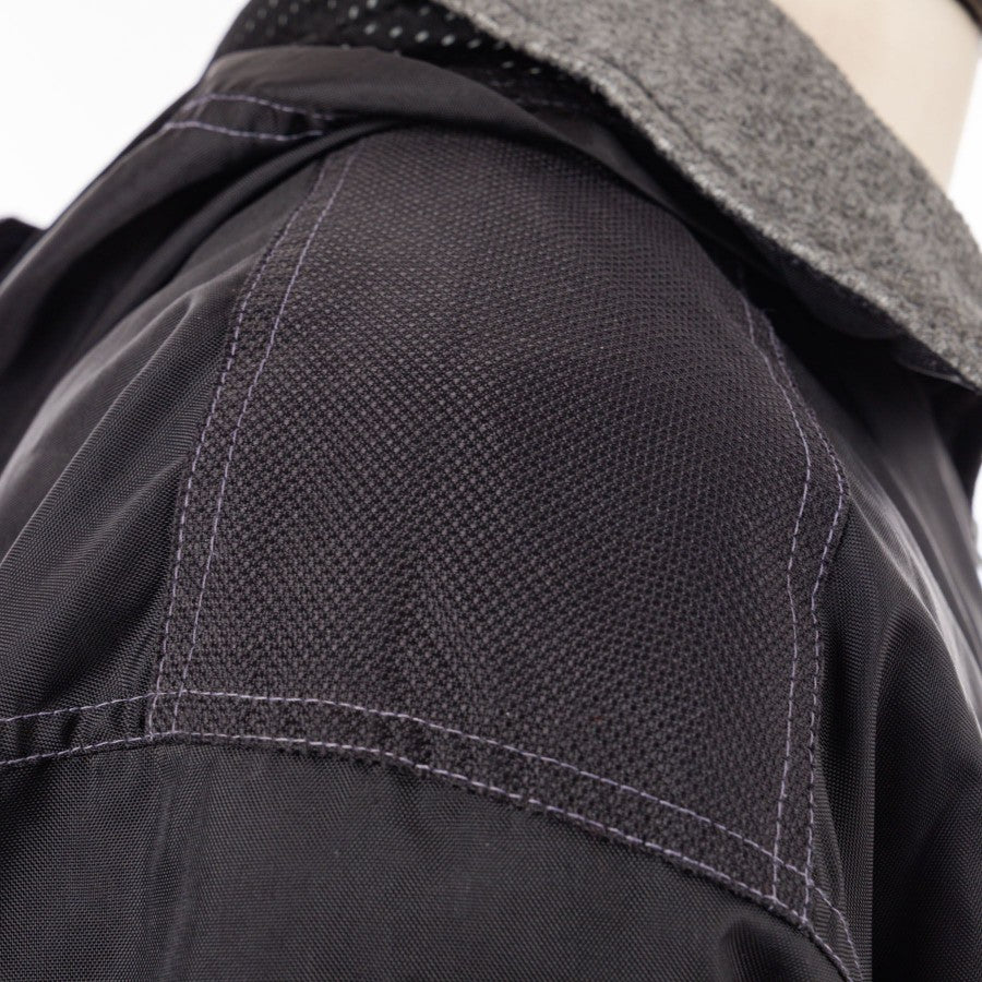 Il giaccone imbottito della Roma è nero con rifiniture in bianco e tasce cucite sia sul petto che sulla zona dell'addome. La chiusura è in full zip, così come quella delle tasche sull'addome, e l'aderenza al corpo del modello è assicurata da lacci neri regolabili, presenti nell'estrema parte inferiore. Sui polsi sono presenti degli scratch che regolano, invece, l'aderenza alle braccia. Il colletto è in panno grigio e le cuciture interne, così come la raffigurazione della testa della lupa capitolina, sono in arancio. Sul lato cuore è cucito lo stemma della società sportiva, il cui lettering è applicato sia sotto il medesimo che nella parte posteriore delle maniche, in arancio, mentre sul lato destro è applicato il marchio dello sponsor tecnico Diadora. Sul cappuccio nero, infine, sono inseriti una fascia argento ed il logo Diadora.