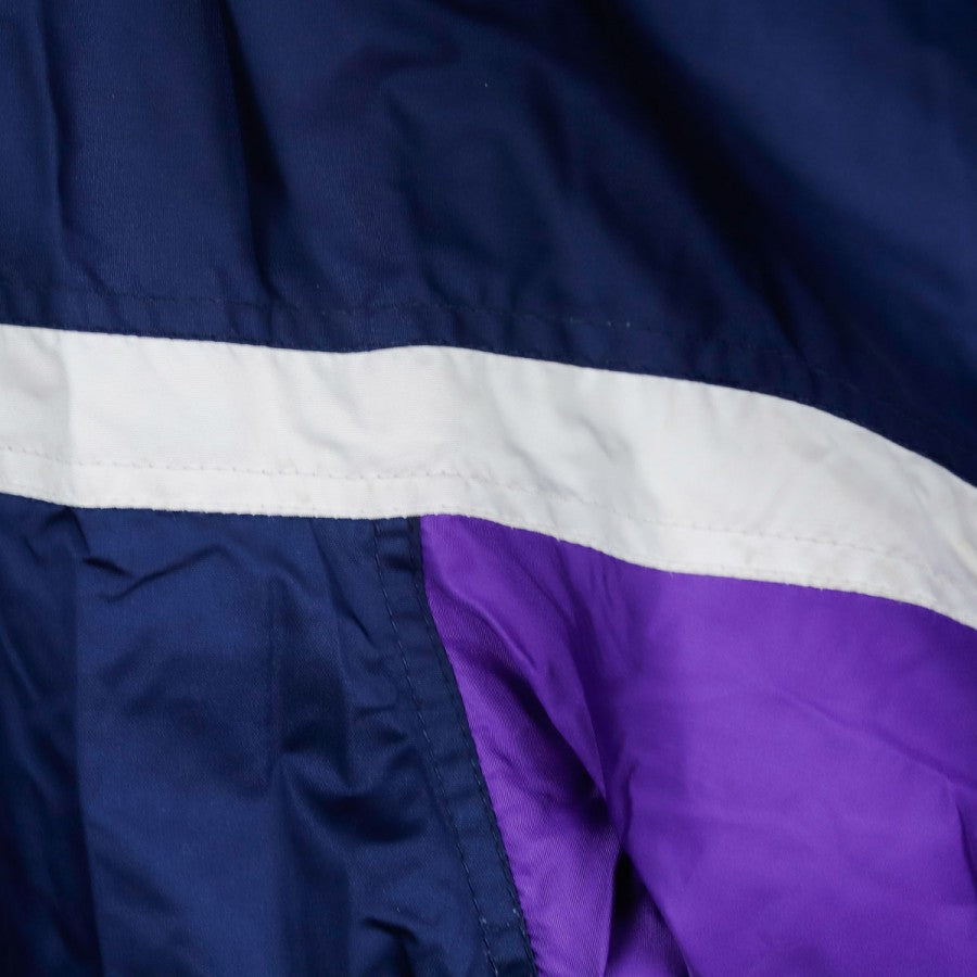 Giaccone ufficiale della Fiorentina stagione 1998/1999, prodotto da Fila. Questo parka invernale presenta i classici colori viola e blu navy con dettagli bianchi, dotato di cappuccio integrato e imbottitura calda ideale per le giornate più fredde. Sul petto campeggiano lo sponsor Nintendo, il logo Fila e lo stemma del club, mentre il retro replica graficamente gli stessi elementi. Taglia M, Made in Italy, in ottime condizioni.