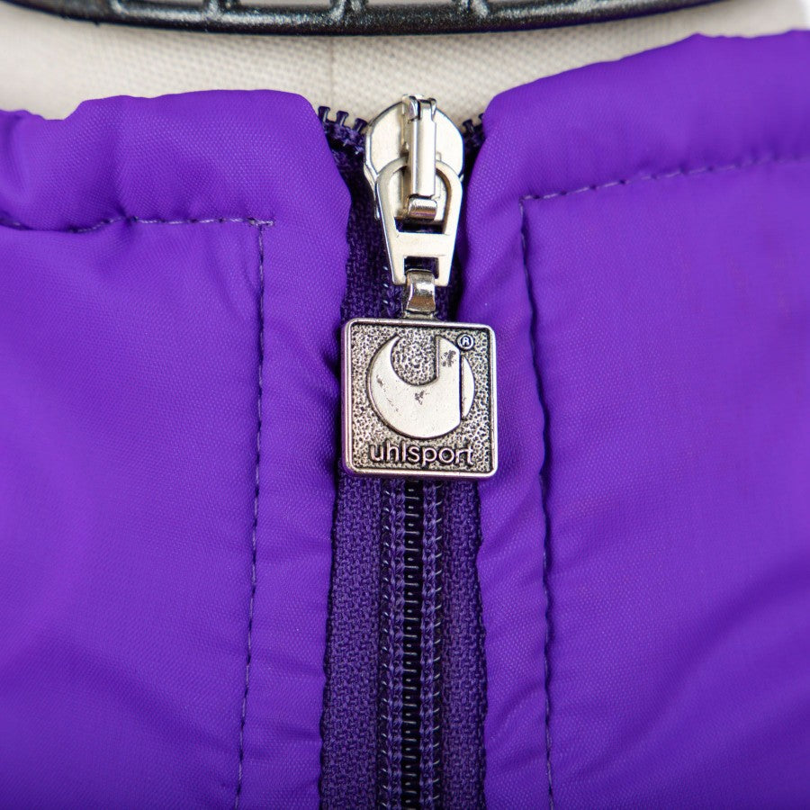 Giaccone Fiorentina Uhlsport 1994/1995. Giaccone della società calcistica AC Fiorentina. Colore di sfondo viola con presenza di bianco perlato per buona parte delle maniche. Non ci sono indicazioni precise sulla taglia.
