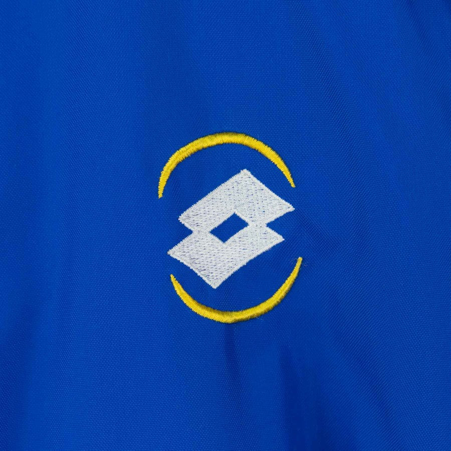 Stemma Hellas Verona cucito lato cuore, logo Lotto sulle maniche e sul retro. Sponsor commerciale Clerman