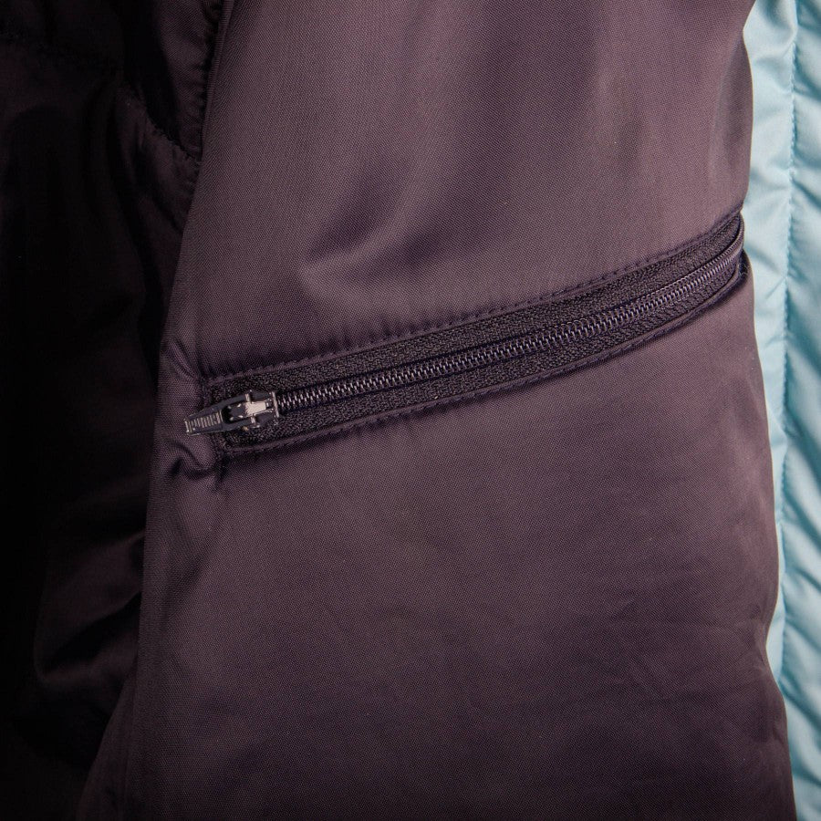 Modello di colore celeste, full zip con cerniera personalizzata e tasche laterali con zip. Lato cuore troviamo il logo Lazio e sponsor commerciale Parmacotto, sulla destra logo Puma ricamato.