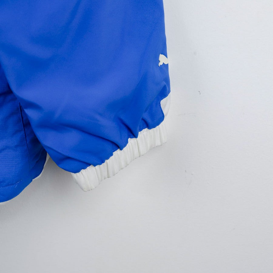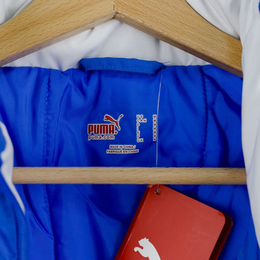 Giaccone ufficiale della Lazio per la stagione 2007/2008, realizzato dallo sponsor tecnico Puma. Il design è caratterizzato da un colore blu intenso con dettagli bianchi sulle spalle e sul retro. Sul petto è presente il classico stemma della Lazio, accompagnato dal logo Puma ricamato. Sul retro spicca la scritta "S.S. Lazio" in bianco. Questo giaccone è ideale per i tifosi biancocelesti e rappresenta un pezzo unico per ricordare una stagione emozionante della squadra capitolina. Taglia M.