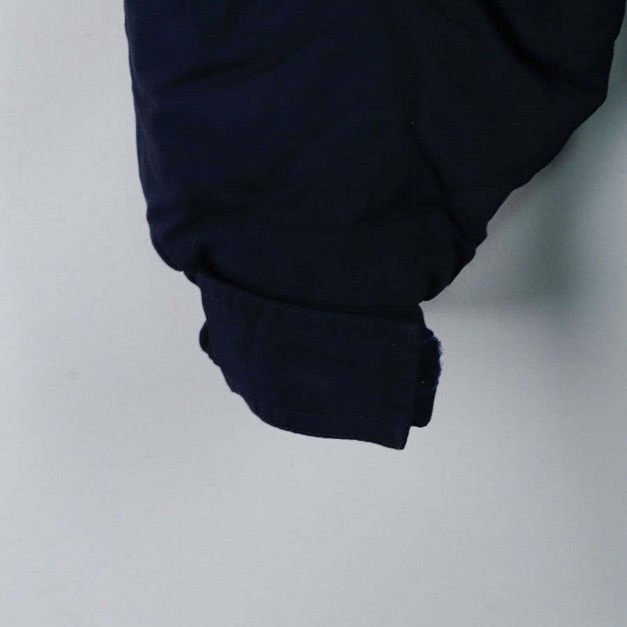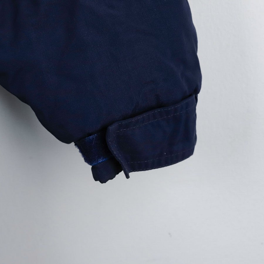 Giaccone ufficiale della SSC Napoli per la stagione 2003/2004, prodotto dallo sponsor tecnico Legea. Realizzato in colore blu navy, il capo presenta lo stemma del Napoli cucito sul lato cuore, accompagnato dal logo dello sponsor commerciale Lupo. Sul retro, il marchio Legea è stampato in bianco, completando il design sportivo ed essenziale di questo capo. Ideale per affrontare le giornate più fredde, il giaccone è una taglia S, perfetta per collezionisti e tifosi della squadra partenopea.