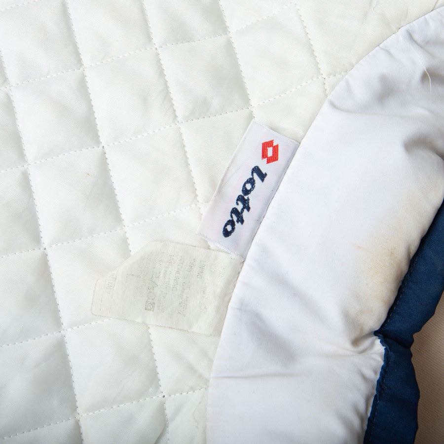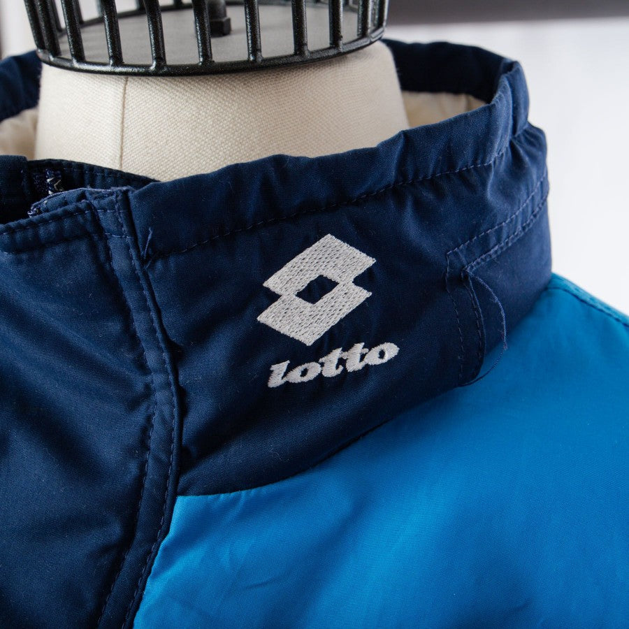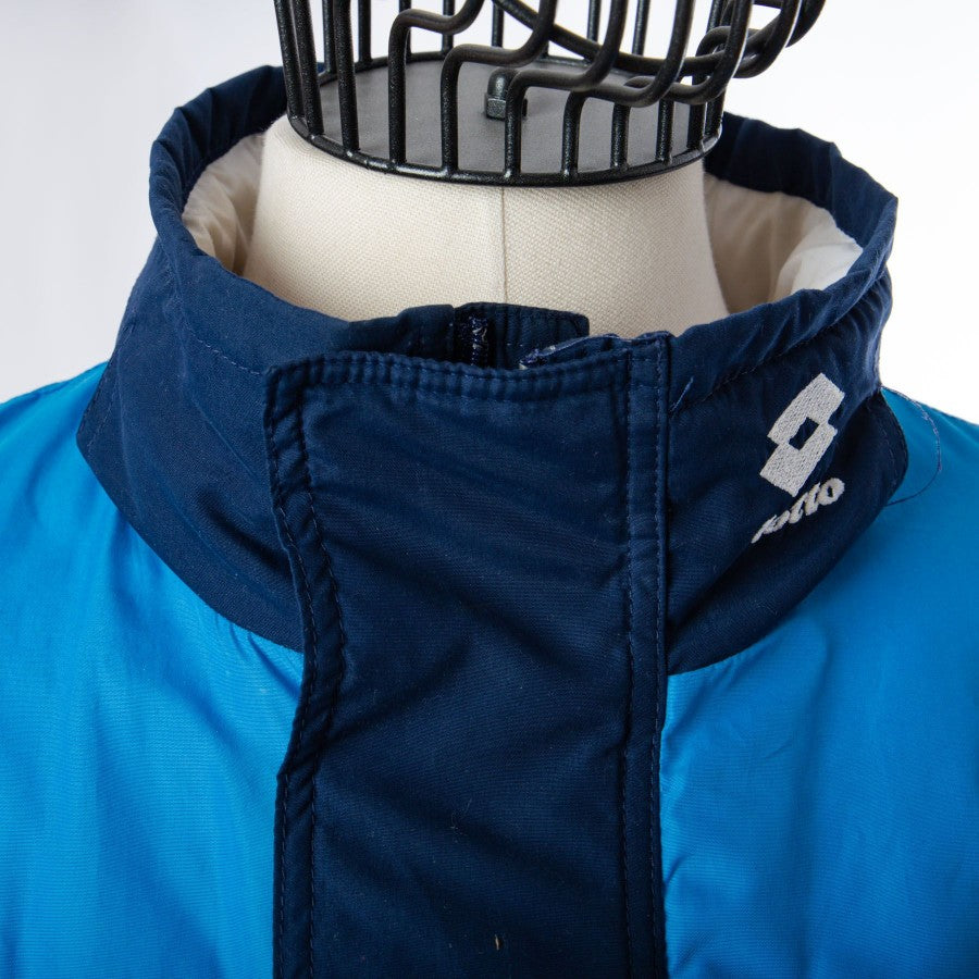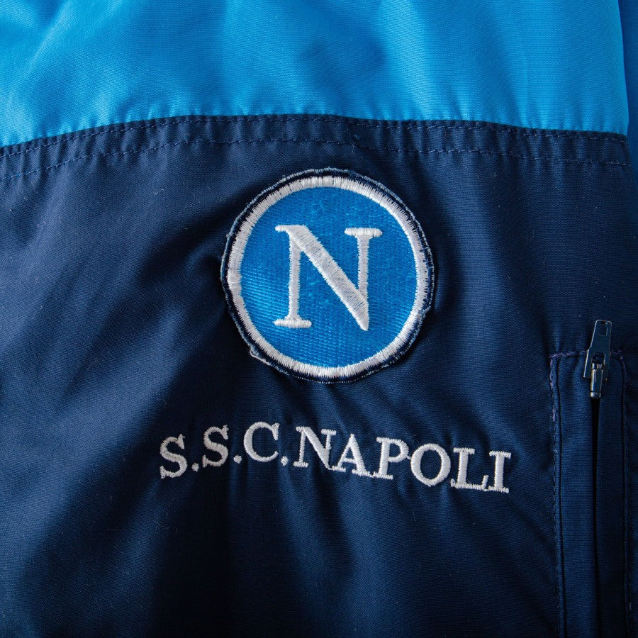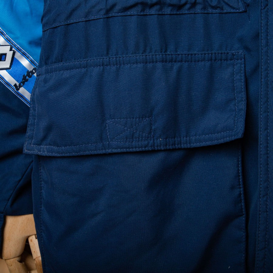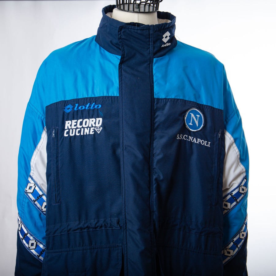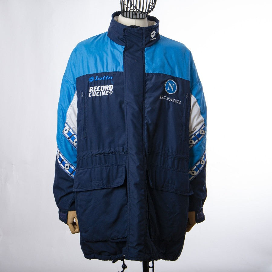 Giaccone ufficiale del Calcio Napoli a maniche lunghe di colore blu della stagione 1994/1995. Sponsor tecnico Lotto e Record Cucine ricamati sul lato destro e logo del club cucito lato cuore. Sul retro sono presenti gli sponsor verniciati.