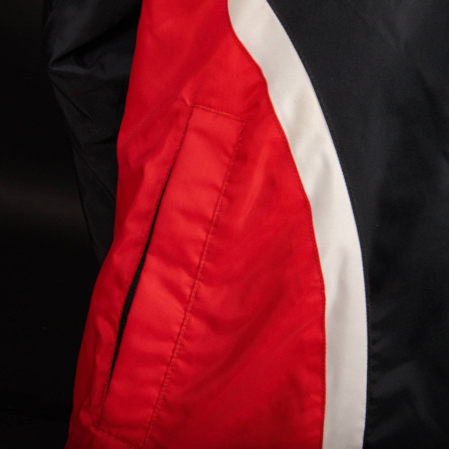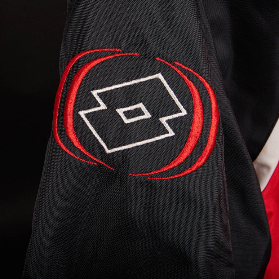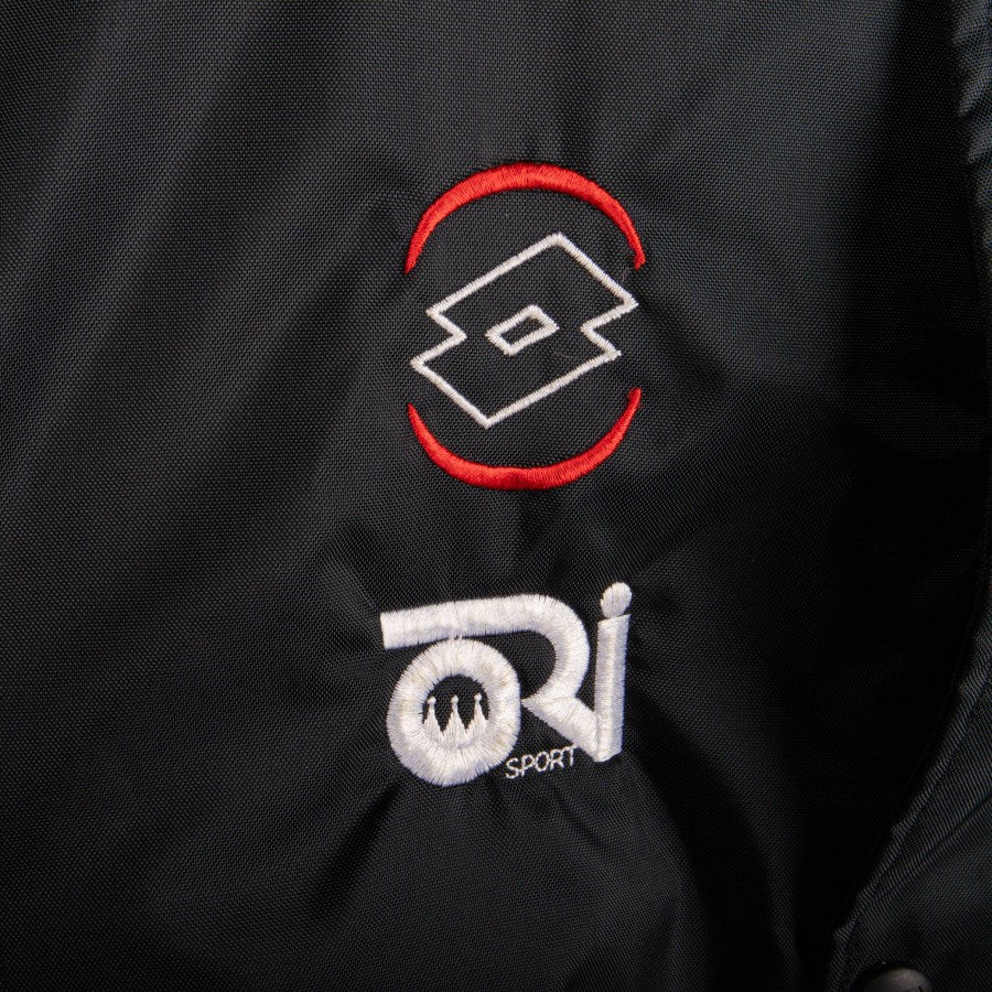 Modello full zip di colore nero con inserti rossi e bianchi. Bottoni a pressione e tasche Laterali. Lato cuore stemma squadra cucito, sulla destra logo Lotto e Sponsor Ori Sport.