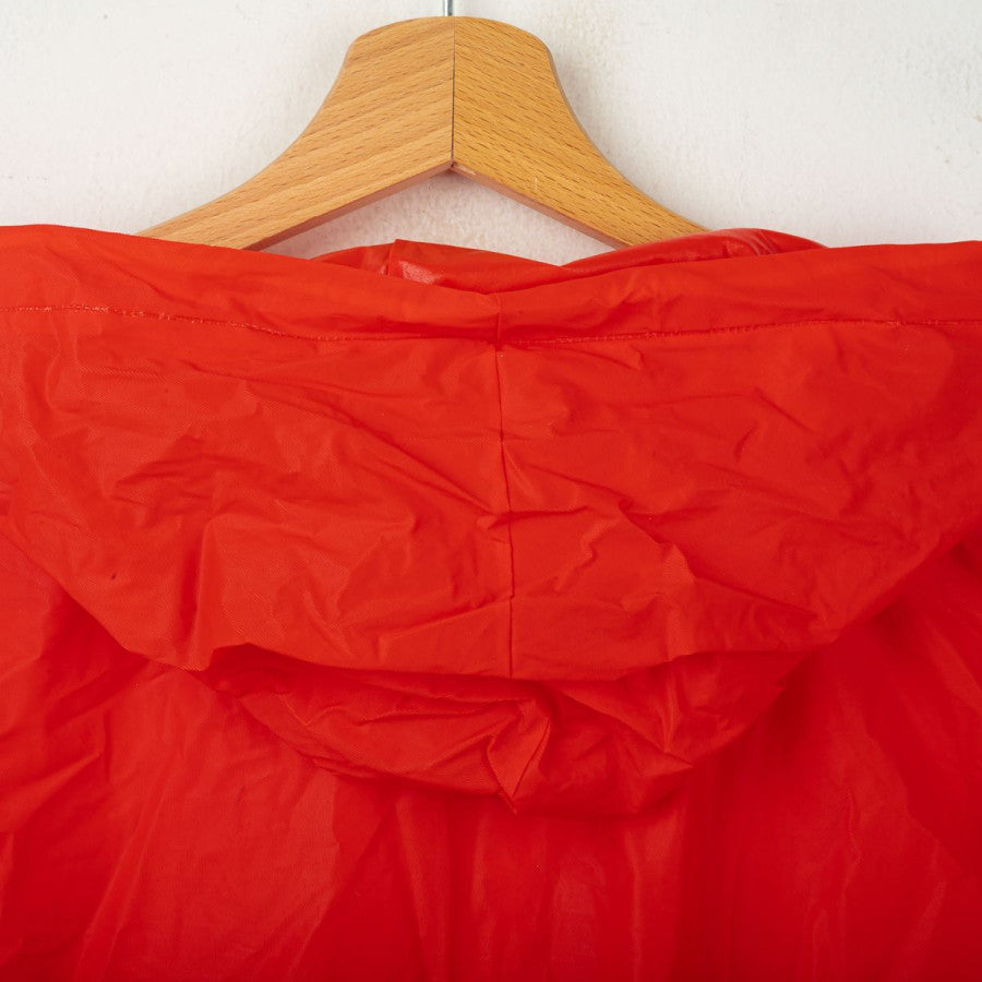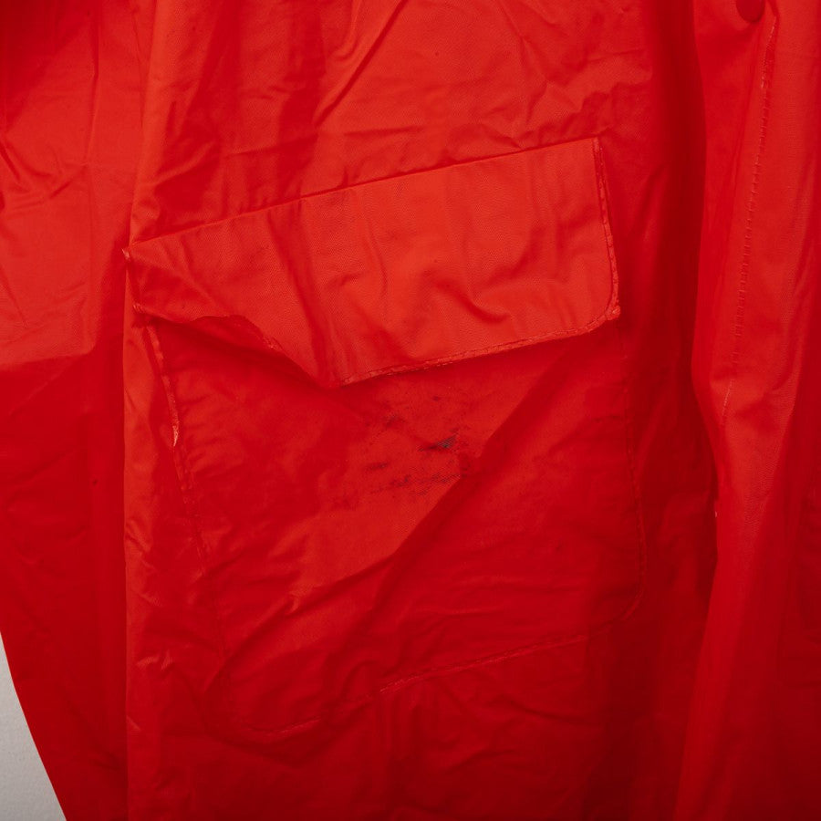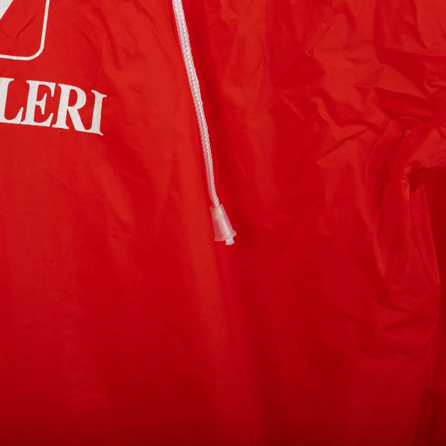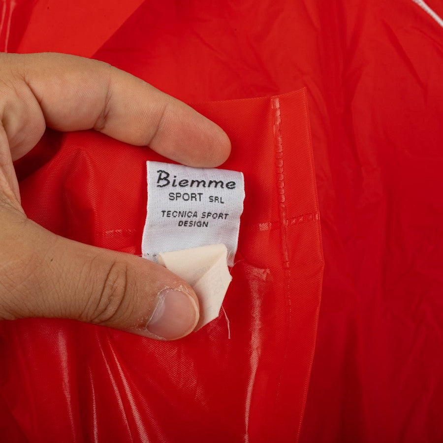 mpermeabile ufficiale del Vicenza Calcio della stagione 2002/2003, prodotto da Biemme. Colore rosso acceso con logo Vicenza Calcio 1902 e sponsor Pal Zileri stampati in bianco sul petto. Modello con cappuccio regolabile tramite cordini, chiusura frontale con bottoni a pressione e tasche anteriori con patta. Tessuto impermeabile leggero, ideale per le giornate di pioggia durante gli allenamenti o in panchina. Etichetta Biemme cucita all'interno. Prodotto ufficiale Biemme.