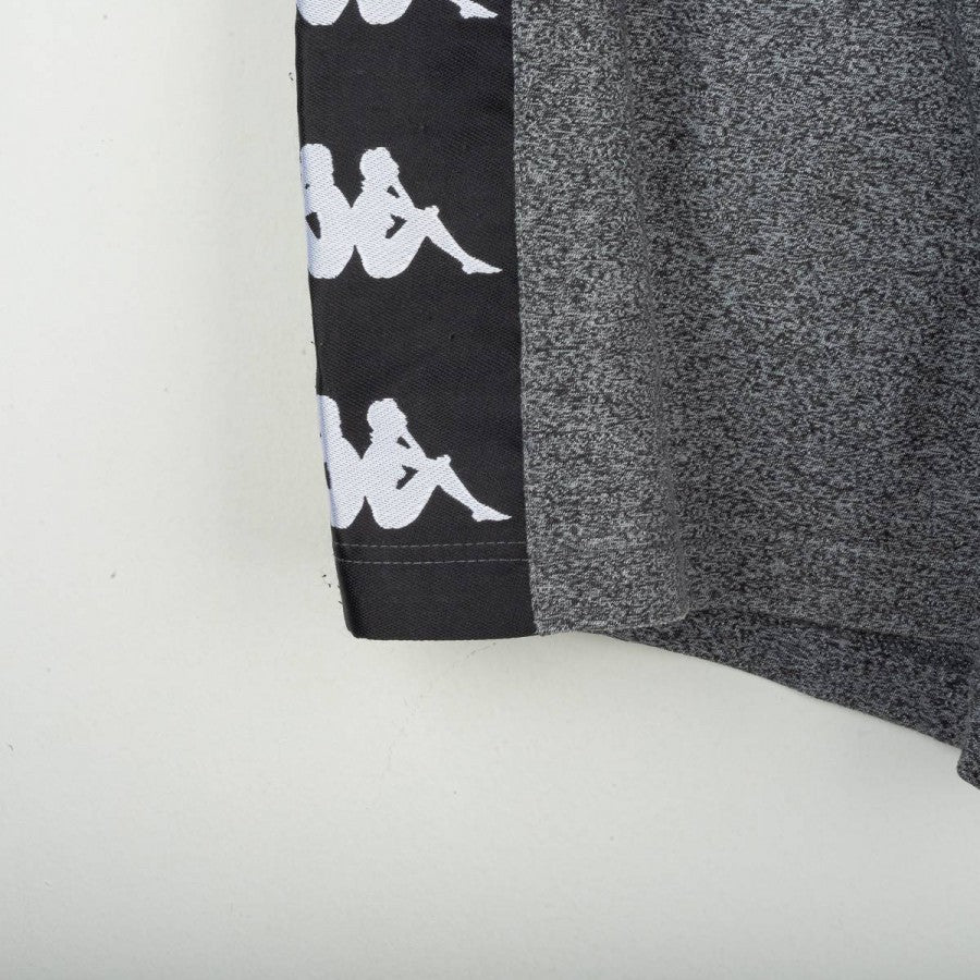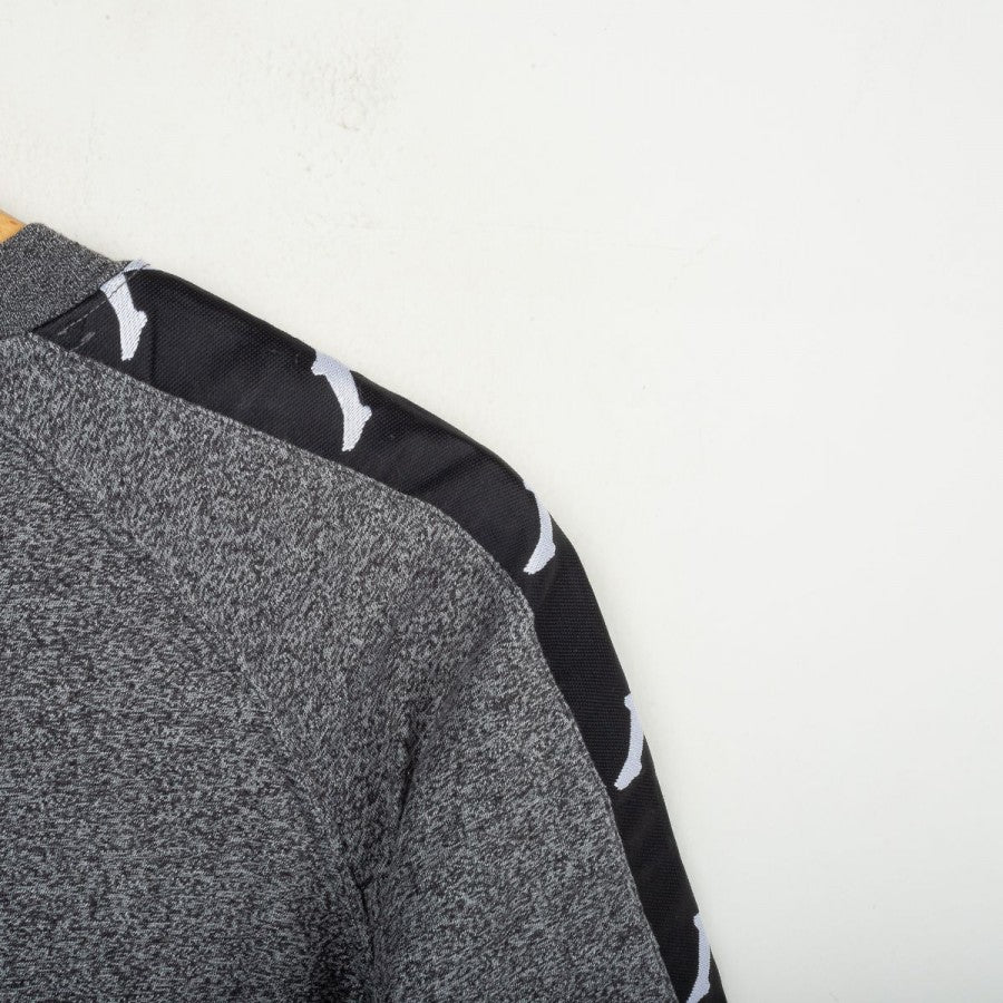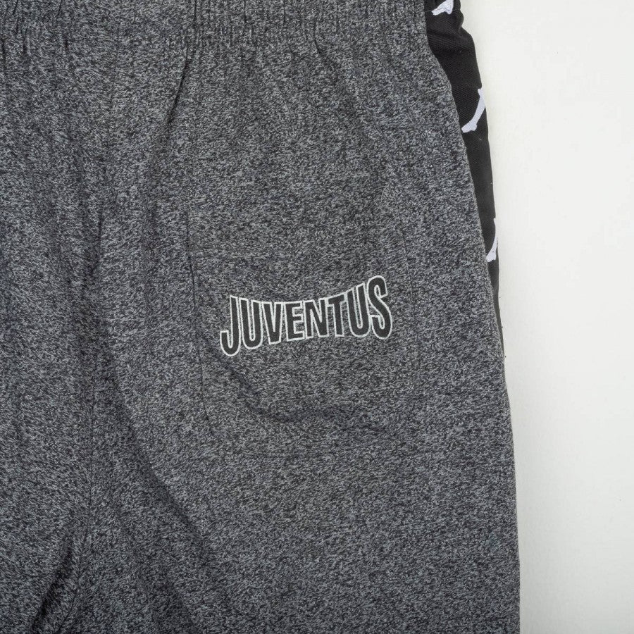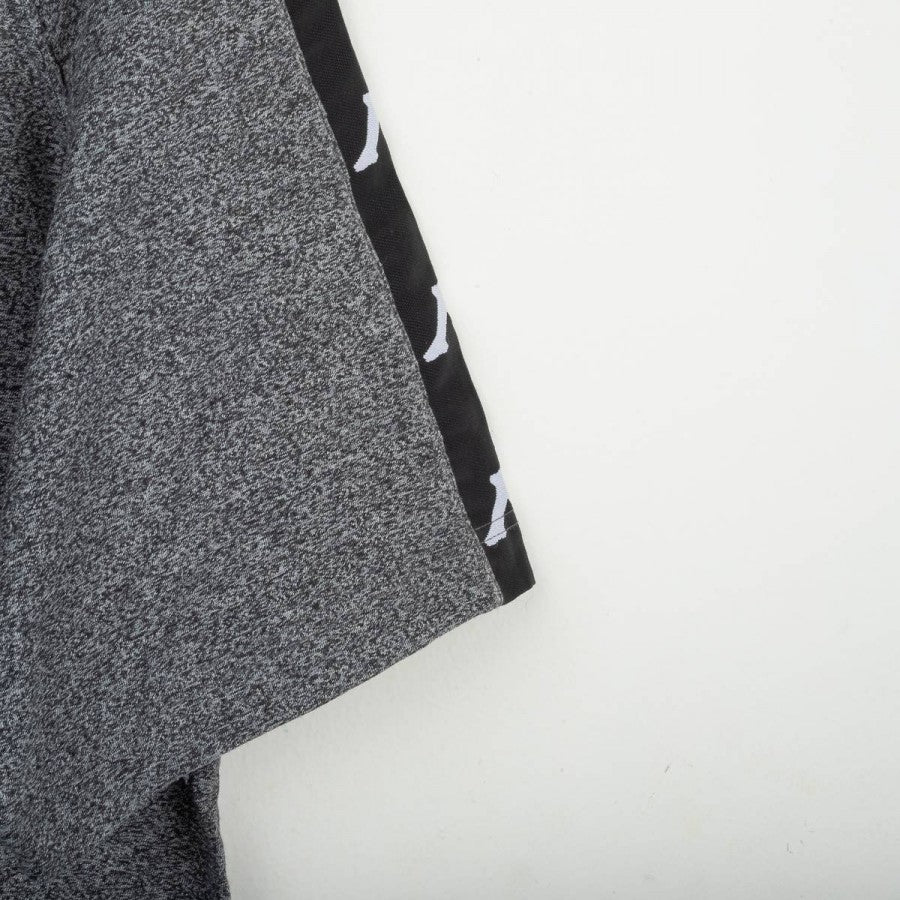 Kit allenamento Juventus della stagione 1996/1997, prodotto da Kappa. Completo composto da maglia e pantaloncini in tessuto grigio mélange, con bande nere sulle maniche e sui lati arricchite dal logo Kappa ripetuto. Sul fronte della maglia presenti scritta “JUVENTUS” stampata in bianco, logo Kappa ricamato e sponsor centrale Sony cucito a patch. Pantaloncini coordinati con logo Kappa ricamato sulla gamba destra e scritta “JUVENTUS” sul retro. Modello ufficiale della linea “Gara”, utilizzato dalla squadra durante le sessioni di allenamento nella stagione che vide la Juventus conquistare la Champions League.