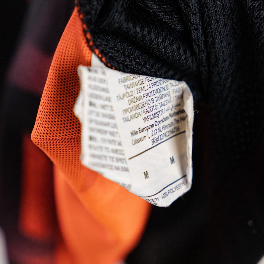 Modello di colore nero con inserti in arancione. Lato cuore è visibile lo Stemma della squadra Barcellona, a destra il logo Nike.