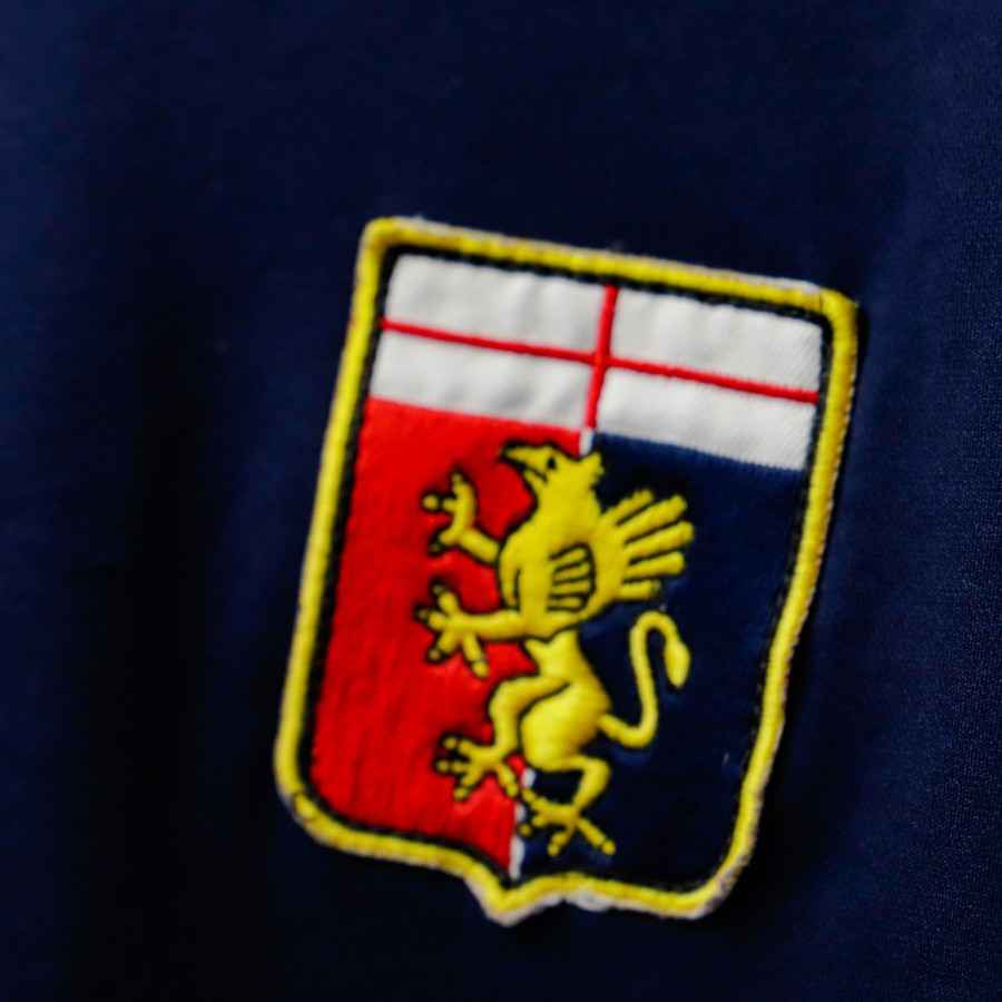 Maglia da allenamento del Genoa con colletto a polo ed applicazioni cucite o verniciate. Prodotto vintage realizzato dallo sponsor tecnico Erreà. Taglia non disponibile.