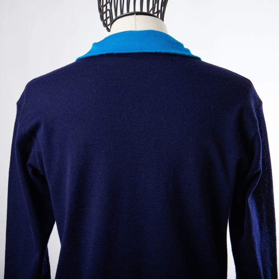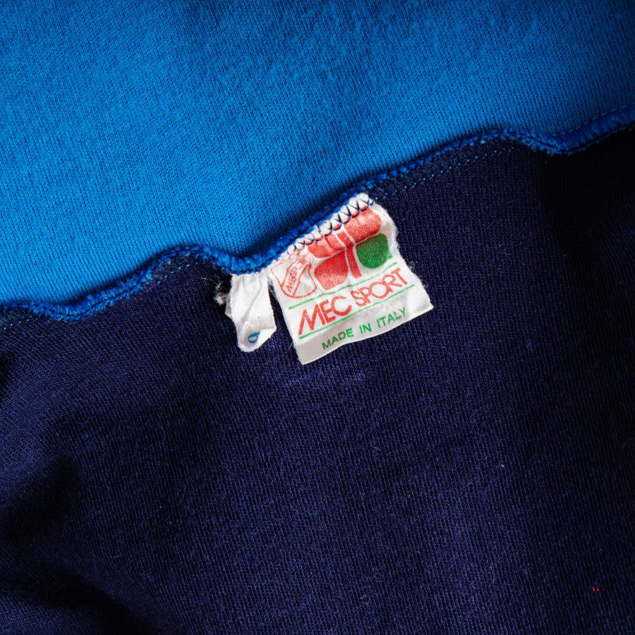 Modello allenamento della maglia Inter prodotta da Mec Sport per la stagione 1981/1982. In morbida lanetta, la maglia è un modello di colore blu navy con dettagli celesti e a manica lunga. Logo col biscione cucito sul lato cuore e sponsor tecnico sulla destra. Lo sponsor commerciale è Inno Hit.