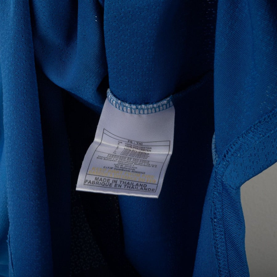 Maglia allenamento Inter Nike 2001/2002. Realizzata dal brand americano con tecnologia Dri-Fit, presenta lo stemma del club nerazzurro sulla manica e il logo Pirelli come sponsor commerciale al centro. Il logo Nike è presente in posizione centrale. La taglia indicata è XL.