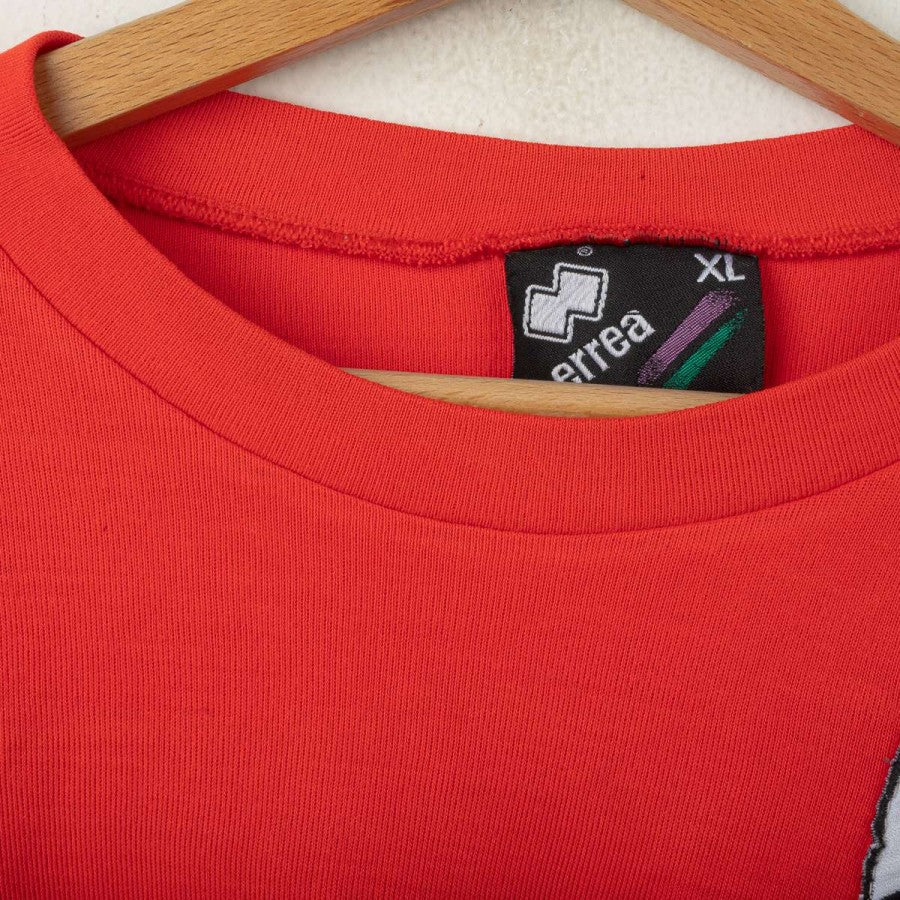 Maglia da allenamento del Nola della stagione 1994/1995, realizzata dallo sponsor tecnico Errea in taglia XL. Il design è semplice e pulito, in un rosso acceso con logo del club cucito sul petto e sponsor commerciale NUSCO ben visibile al centro. Il logo Errea è presente anch'esso sul petto, confermando l'originalità della maglia.