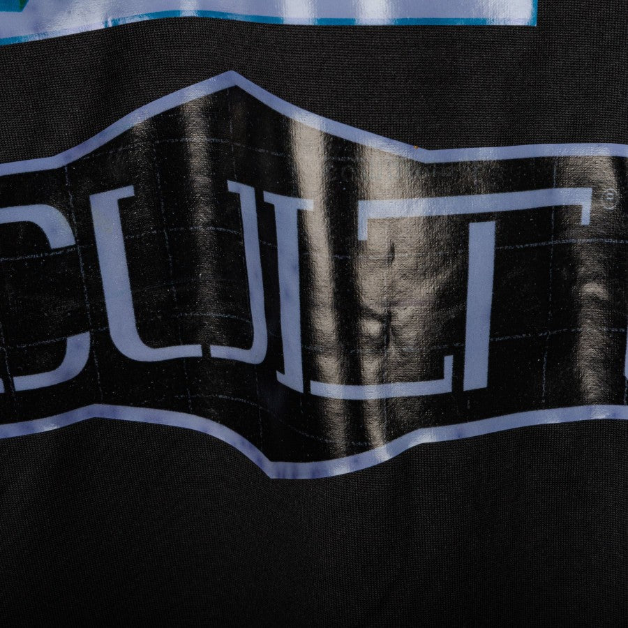 Modello di colore nero con inserti in bianco. Stemma lato cuore e lettering Legea sulla destra. Al centro sponsor commerciali Fainplas e Cult. Sulla manica Toppa Lega Calcio Serie B.