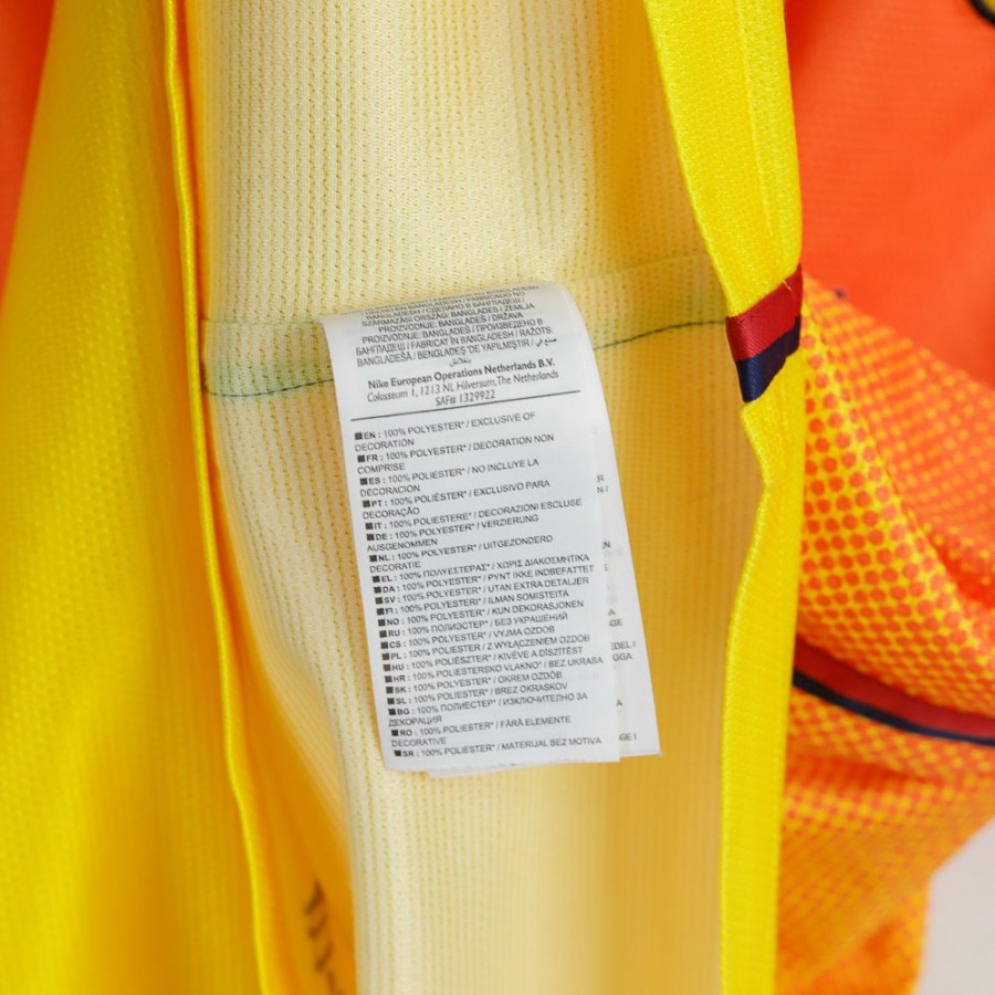 Maglia da trasferta ufficiale del FC Barcellona per la stagione 2012/2013, realizzata dallo sponsor tecnico Nike. Questo modello presenta un design sfumato che passa dall'arancione al giallo, rendendolo uno dei più iconici e distintivi della storia recente del club. Sul petto troviamo lo stemma del Barça, il logo Nike e lo sponsor Qatar Foundation, mentre sul retro è presente il logo UNICEF, a testimonianza dell'impegno sociale del club. Sulle maniche sono applicate le patch della Liga e della Senyera catalana.