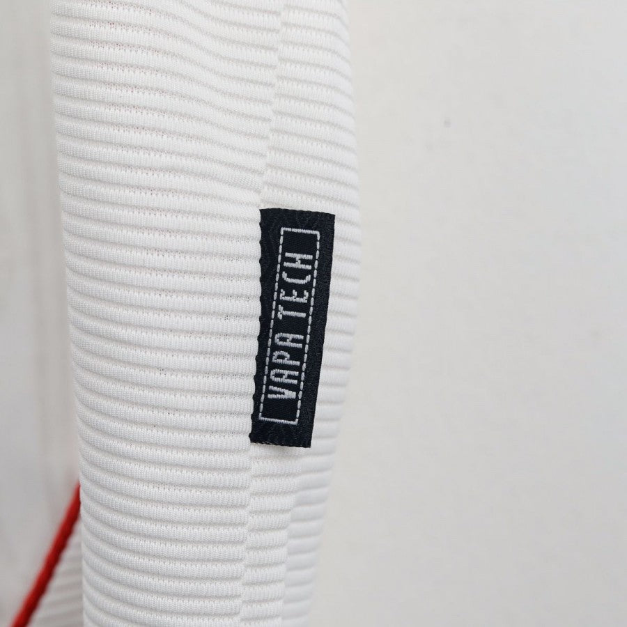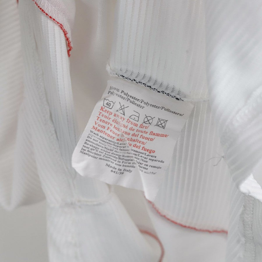 Maglia away ufficiale del Bologna, stagione 2000/2001, prodotta dallo sponsor tecnico Umbro e personalizzata con il nome e il numero di Giuseppe Signori, il leggendario numero 10. Il design è prevalentemente bianco con dettagli blu e rossi sulle maniche e sul colletto. Lo stemma del Bologna è cucito lato cuore, mentre il logo Umbro è ricamato sul lato destro del petto e sulle maniche. Al centro della maglia spicca lo sponsor commerciale Granarolo in blu. Sul retro, il nome "Signori" e il numero 10 sono stampati in caratteri blu. Taglia S.