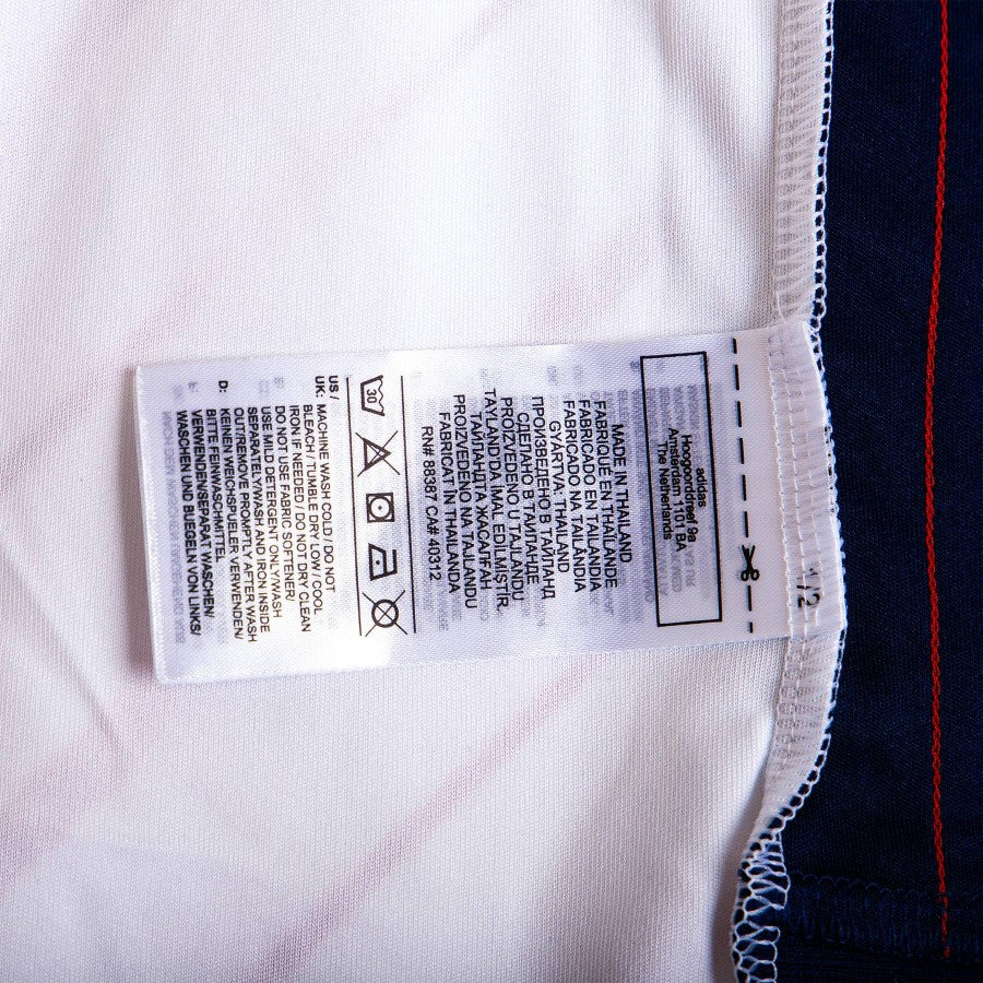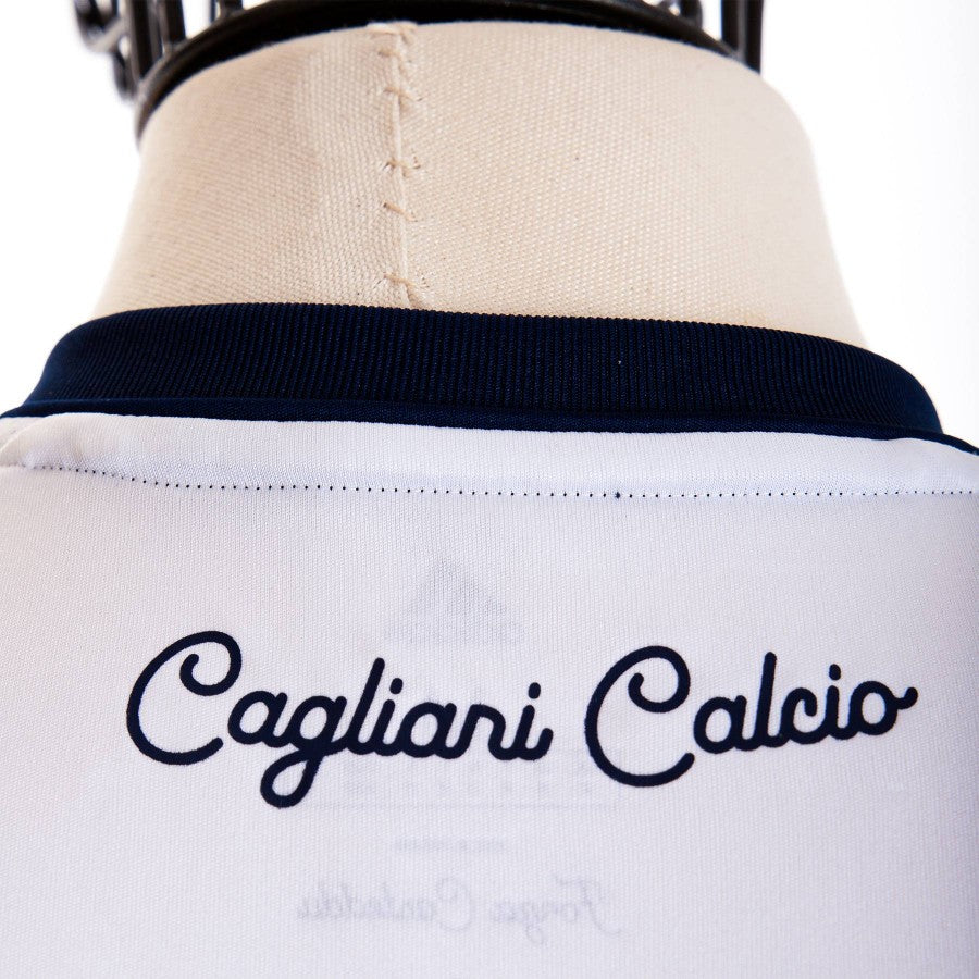 Maglia da gara Away del Cagliari stagione 2020/2021 preparata per il centrocampista Nahitan Nandez. Sul fronte è applicato in gommina il logo Cagliari sul lato cuore ed è ricamato sul lato destro il logo Adidas. Al centro è applicato il logo dello sponsor commerciale Ichnusa mentre sul retro sono stampati lettering NANDEZ e numero 18. Sulla manica destra c'è la patch Serie A TIM. Tutti gli altri sponsor commerciali sono applicati in plastica leggera bianca. Sul retrocollo è stampata la lettering CAGLIARI CALCIO. L'etichetta della taglia è termosaldata nel collo, l'etichetta del prodotto è cucita all'interno, sul fondo c'è il bollino Adidas.