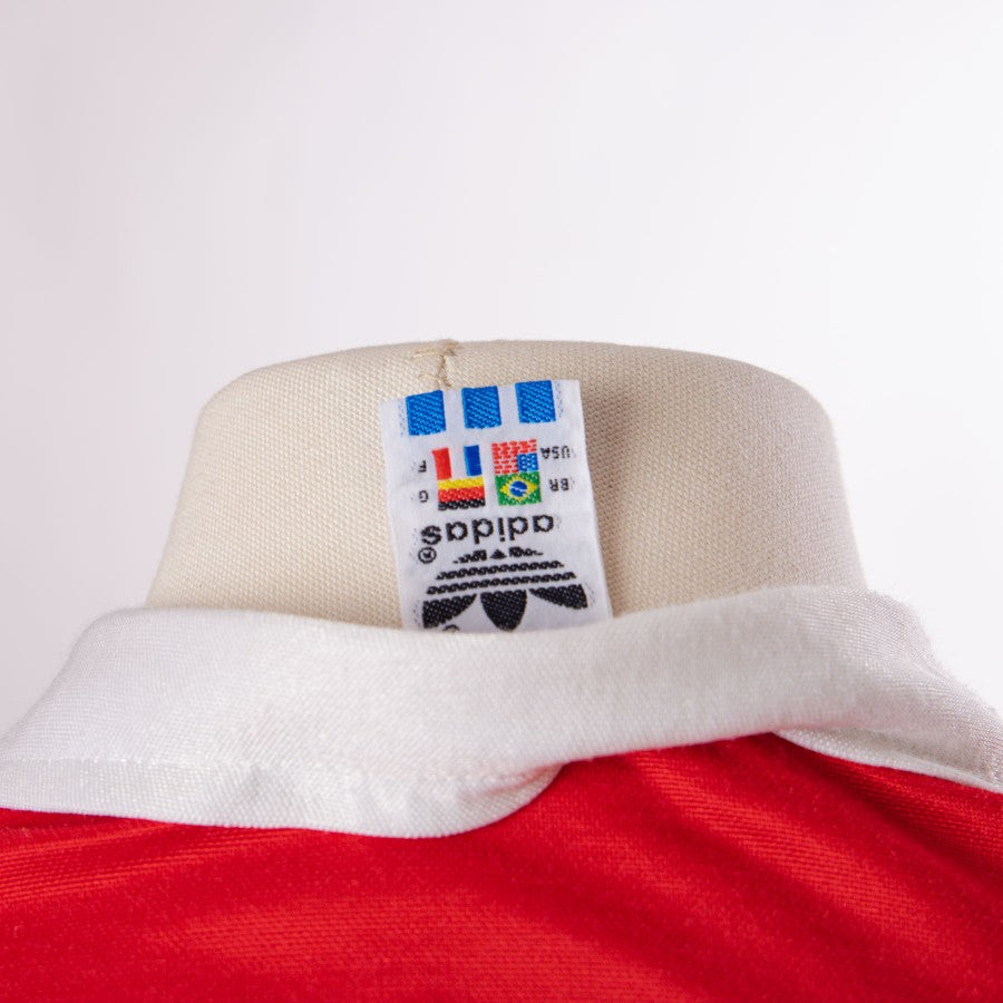La maglia calcio vintage è in buono stato e non presenta discontinuità di colore.