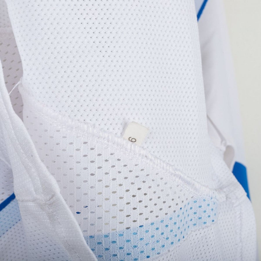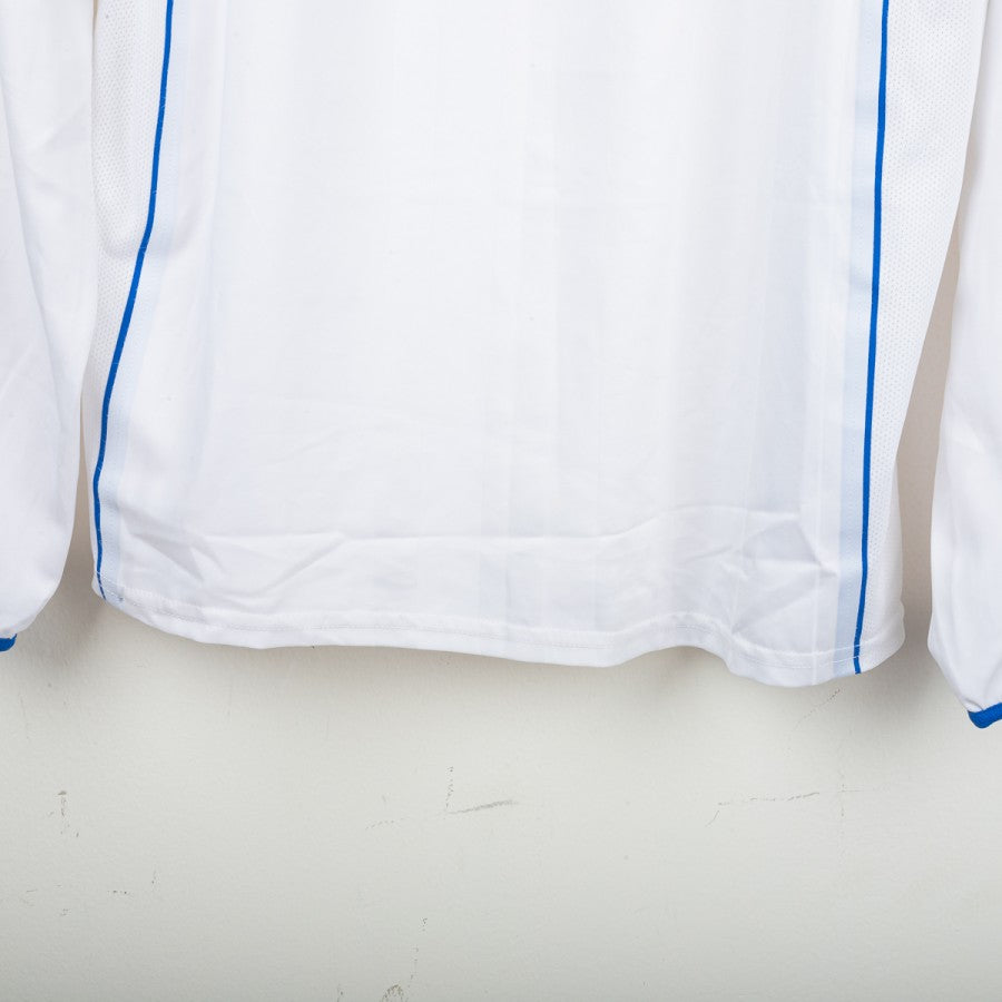 Maglia away dell'Inter stagione 2004/2005, prodotta da Nike. Colore bianco con dettagli neri e inserti azzurri sulle spalle e sui lati. Logo Nike ricamato sul petto destro, sponsor Pirelli applicato in stampa gommata al centro. Stemma Inter cucito lato cuore con stella gialla sovrastante. Retro con nome Adriano e numero 10 in nero. Modello a maniche lunghe. Vestibilità regolare. Taglia XL.